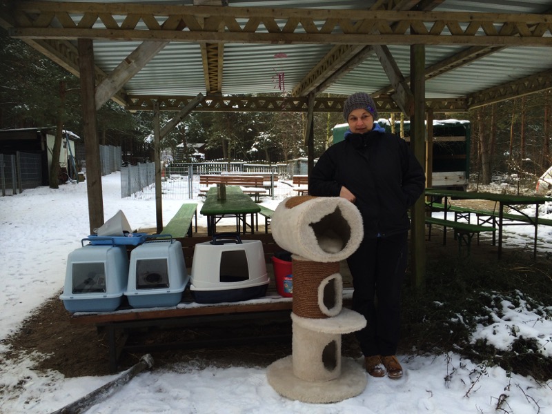 Eine große Spende aus Potsdam beinhaltete jede Menge Katzenzubehör, Intelligenzspielzeug, einen Kratzbaum etc.