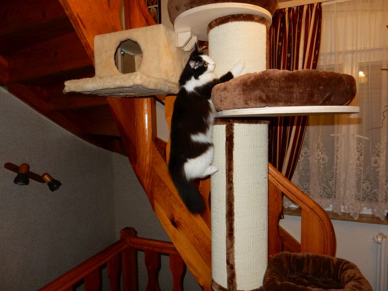 Er hat uns ein super Kratzbaum geschenkt, der sofort erkundet wurde!