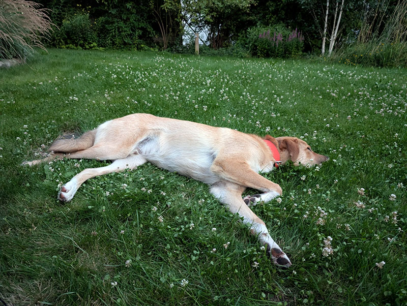 Später hat er mit uns noch einen ersten Erkundungsgang durch den Garten unternommen (und konnte sich ENDLICH lösen - vorher war alles viel zu aufregend 😊)