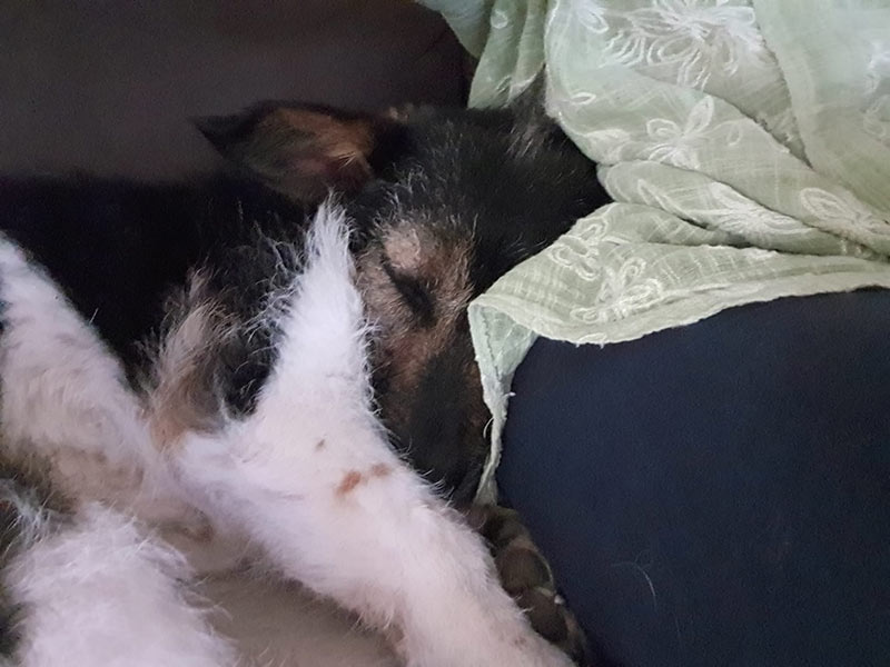 Alle Hunde und alle Menschen sind von Mia hellauf begeistert, weil sie sehr ruhig ist und so sehr viel schmust. Wie ihr auf dem Bild seht, haben wir für Hunde die ideale Umgebung und das wird von Mia sehr gut genutzt.