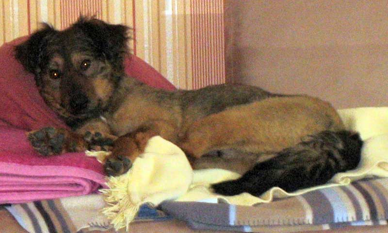 nach nunmehr einem Monat fanden wir es an der Zeit, uns mal zu melden. Bepperl, der nun Benji heißt, hat sich sehr schnell eingelebt. Bereits am ersten Abend hat er wie selbstverständlich das Sofa in Beschlag genommen und haufenweise Kuscheleinheiten eingefordert (und nachts hat er "geheult", weil er sich noch nicht die Treppen zu unserem Schlafzimmer hoch getraut hat und allein im Erdgeschoss bleiben musste - nach zweimaligem Hochtragen hatte sich das Problem aber erledigt). Am nächsten Tag ist er uns schon auf Schritt und Tritt im Garten nachgelaufen. Und nach drei Tagen war es schon möglich, Benji abzuleinen, ohne dass er sich aus dem Staub gemacht hätte."