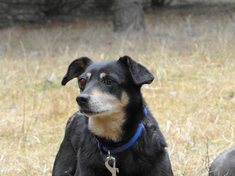 Auf den Fotos erkennt man, dass ihr rechtes Auge voller Blut ist. Dort ist sie auch erblindet. Wir haben sie von einer Augenspezialistin in Berlin untersuchen lassen. Leider kann man nichts mehr gegen die Erblindung tun. Eventuell muss das Auge sogar ganz herausgenommen werden, damit sich dort kein zu hoher Druck aufbaut und Felicita Schmerzen leidet. Die Augenärztin war sich sicher, dass die Einblutung nur von einem starken Schlag auf den Kopf herrühren kann. Man hat also wohl versucht, sie zu erschlagen.
