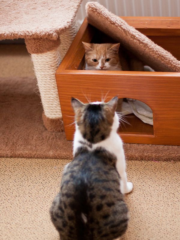 Zuhause angekommen war die Spannung natürlich groß, ob sich die beiden Katzen auch vertragen werden. Nachdem Harry ca. 24 Stunden an Daxy rumgeschnüffelt hat, wurde zwischen den beiden die Rangordnung ausgehandelt, zu unserer Freude aber ohne die Krallen auszufahren und wir hatten auch den Eindruck, dass alles mehr in spielerischer Weise ausgetragen wurde.