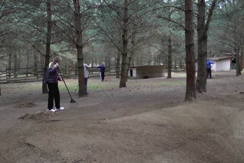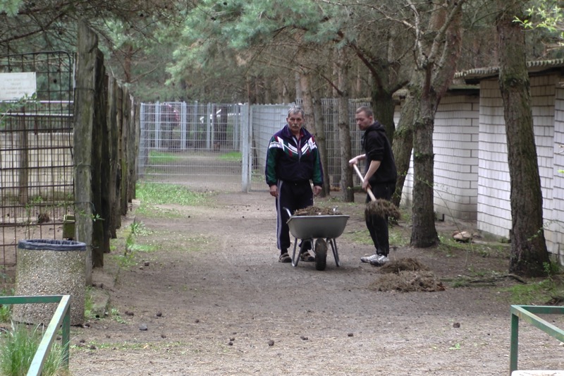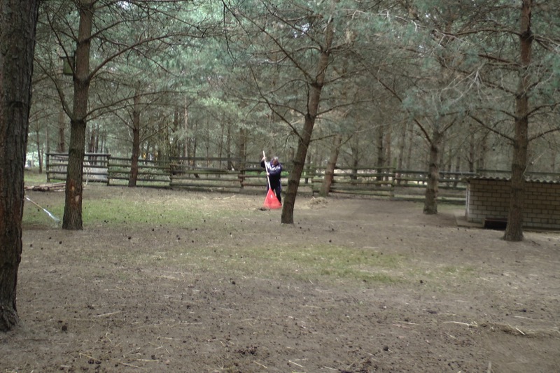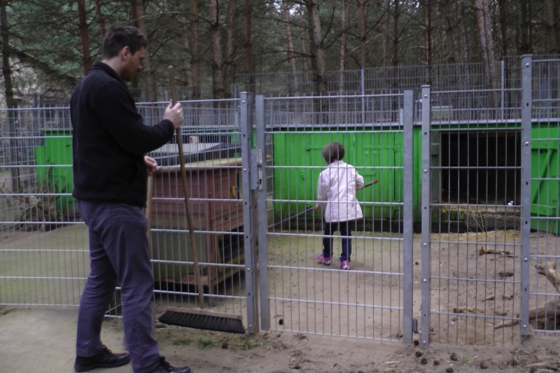 Ihr großes Gehege wurde derweil von ausdauernden Menschen schön sauber geharkt.