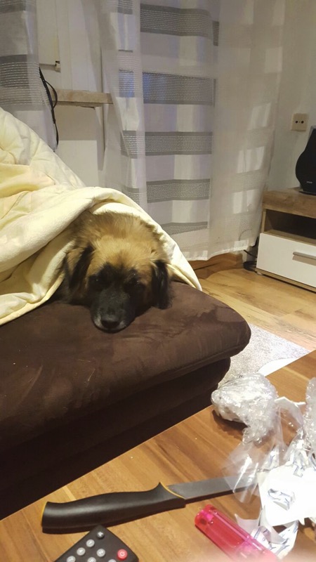 der kleine King ist jetzt genau 1 Jahr bei uns und er ist richtig aufgeblüht. Vom kleinen Kleffer ist nichts mehr übrig. Er ist ruhig, ausgelassen und ich glaube sagen zu können, sehr glücklich. Wir sind ohne Schwierigkeiten ins neue Leben zu dritt gestartet. Er hat sich schnell eingewöhnt und alle offen empfangen, sogar die Katze meiner Eltern. Er geht gerne schwimmen und liebt seinen Ball über alles :D.