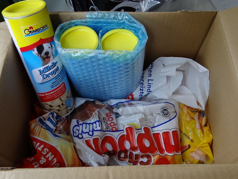 Unter den vielen anderen guten Sachen im Paket entdeckten unsere Tierpfleger natürlich sofort, dass auch für sie Leckerli dabei waren.