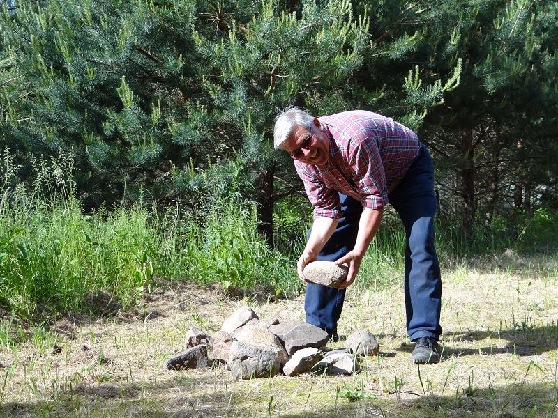Die Sonnenbank für Echsen ist begonnen. Nun hoffen wir, dass unsere Besucher weiterhin größere Feldsteine mitbringen, damit die Bank wachsen kann.
