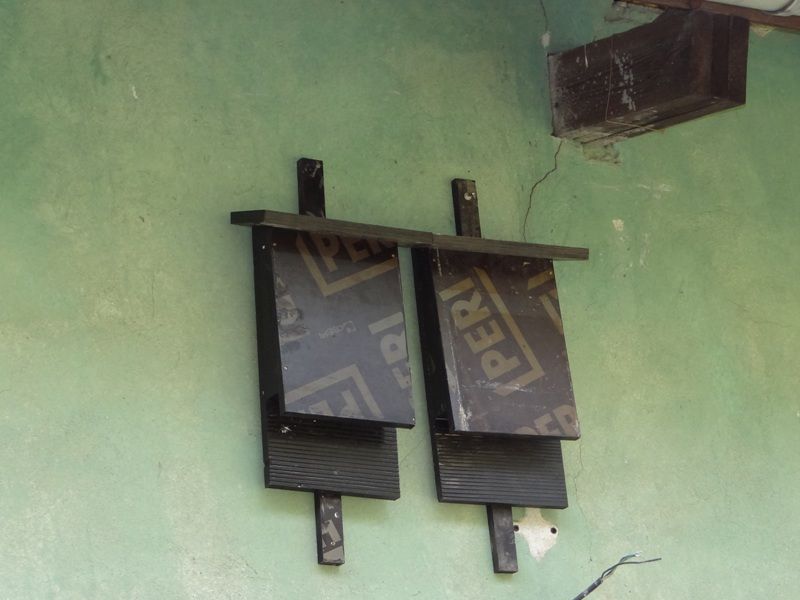 In der Hoffnung, dass auch Fledermäuse bei uns heimisch werden, haben wir ihnen speziell gefertigte Fledermauskästen aufgehängt. Wir werden noch weitere Stellen einrichten. Es sollten an einer Stelle immer mindestens 5 Kästen im Abstand von wenigen Metern zueinander aufgehängt werden.