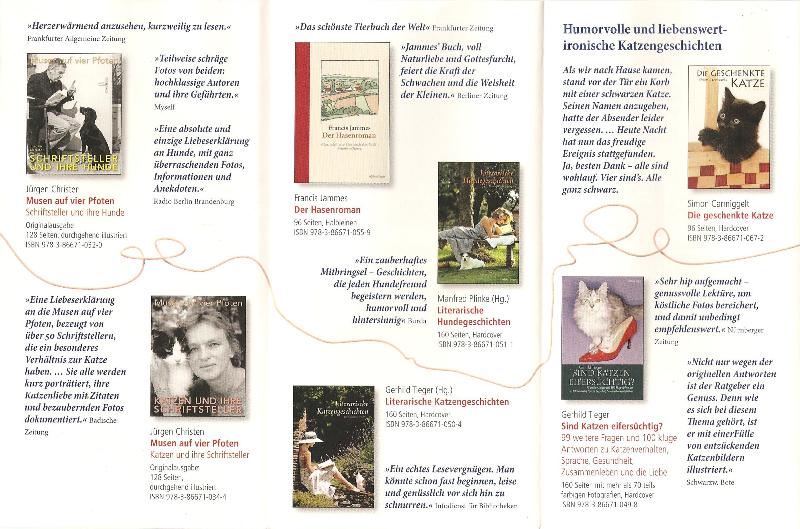 Überhaupt scheint man es in der Edition Tieger gut zu meinen mit Tieren, wie der Blick in einen Verlagsprospekt zeigt.
