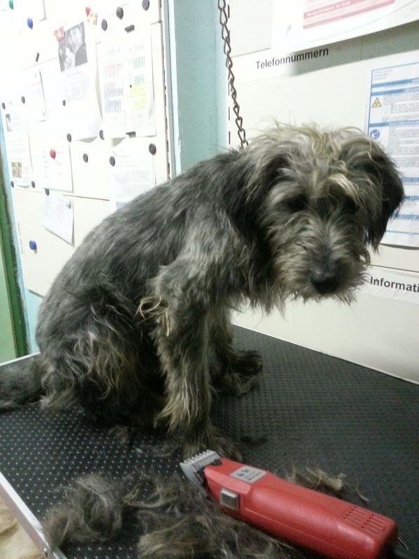geteilt: während Timo die Prozedur als zusätzliche Streicheleinheit betrachtete, empfanden andere das Bürsten und Scheren wohl als Eingriff in ihr persönliches Selbstbestimmungsrecht und motzten.