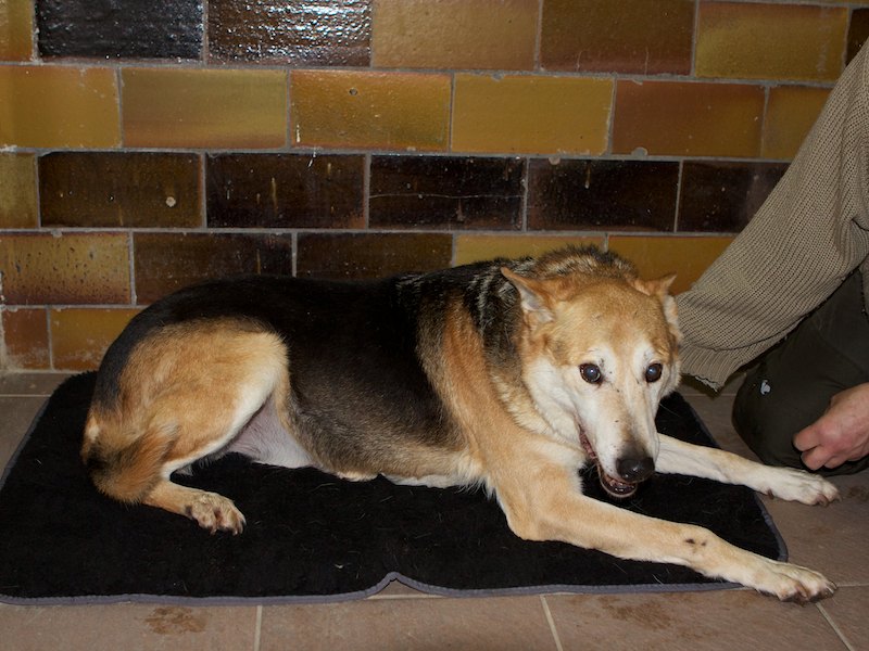 Die dritte Decke war für Joy Brown bestimmt. Er kann die weiche Kuschelunterlage auch gut gebrauchen, denn wir mussten ihn operieren lassen. Das arme Kerlchen hatte Blasensteine - eine sehr schmerzhafte und nicht ungefährliche Angelegenheit.