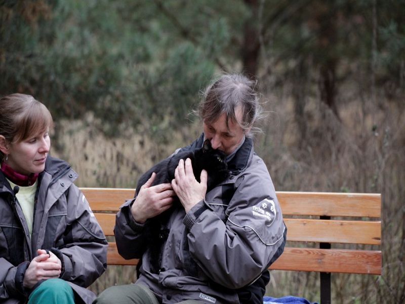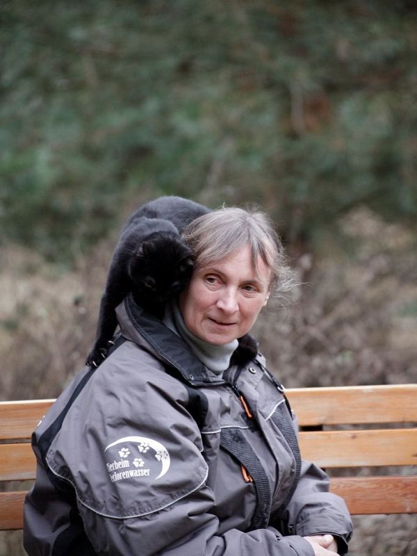 Sie nutzte die Dreharbeiten zu einer ausführlichen Schmusestunde mit unseren Tierpflegerinnen Gabi und Katrin.