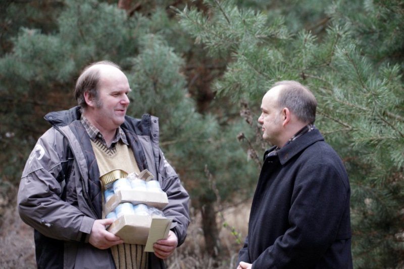 Mit großer Freude nahm Tierheimleiter Wolfgang Aland rechtzeitig zum Weihnachtsfest eine schöne Futterspende aus den Händen des Kino-Chefs Andreas Söhnge entgegen. Und: einen Umschlag - gefüllt mit dem Innenleben der dicken Berta - dem Sparschwein, das im Hofgarten-Kino das ganze Jahr über fleißig Spenden gesammelt hat und jetzt geleert wurde.