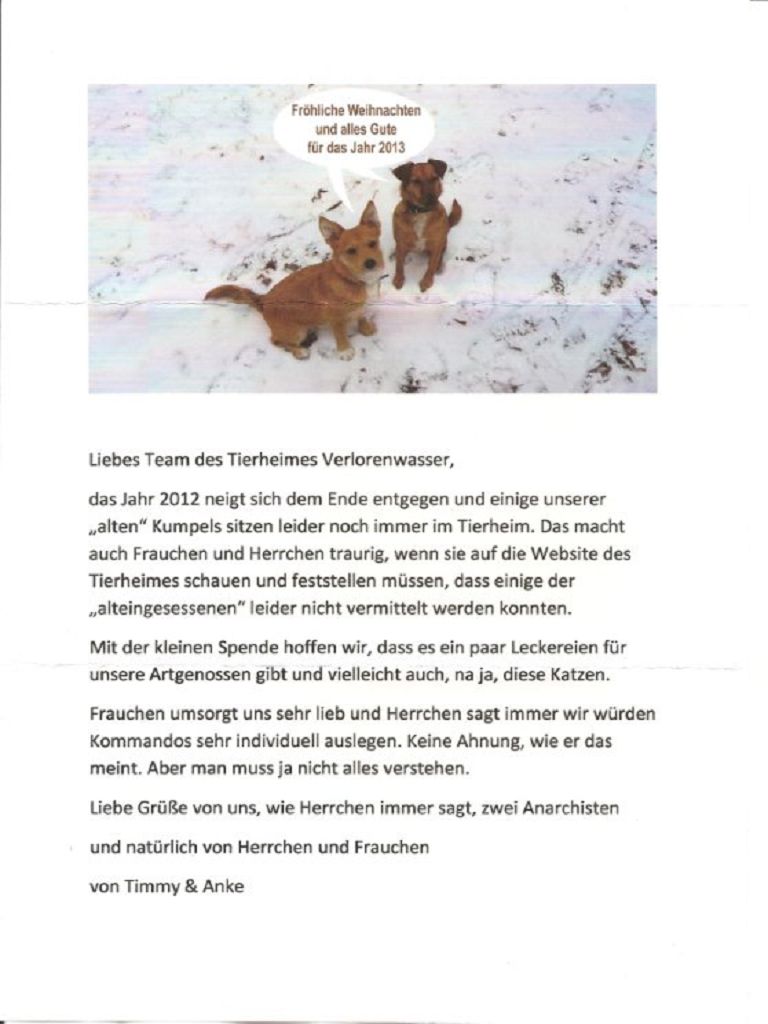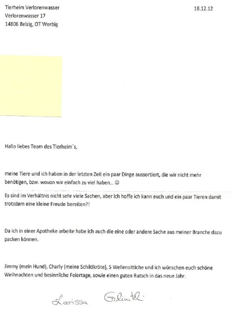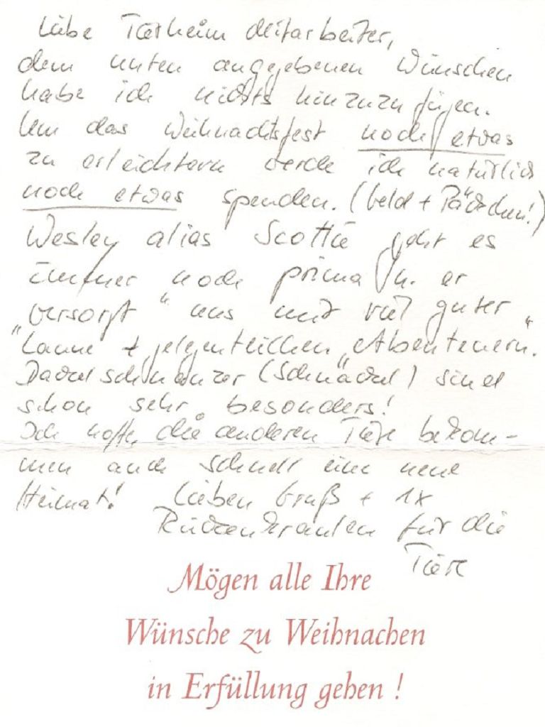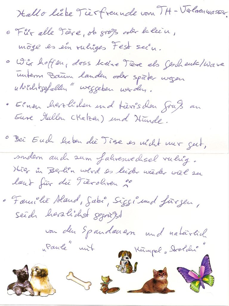 Viele Tierfreunde haben zu Weihnachten an uns gedacht.