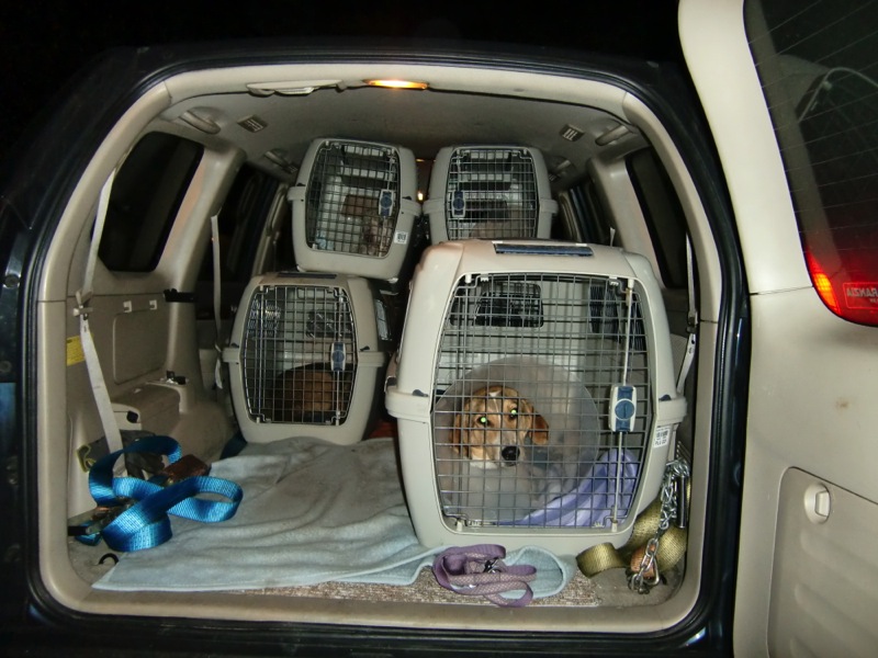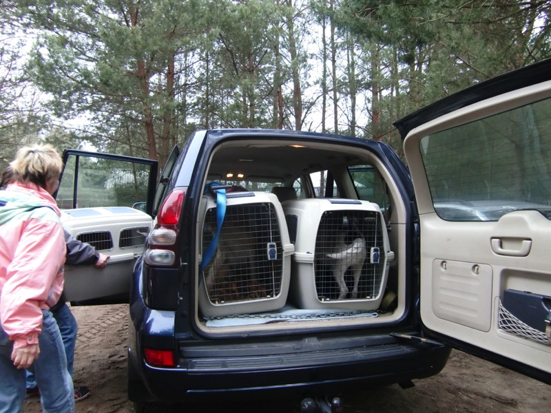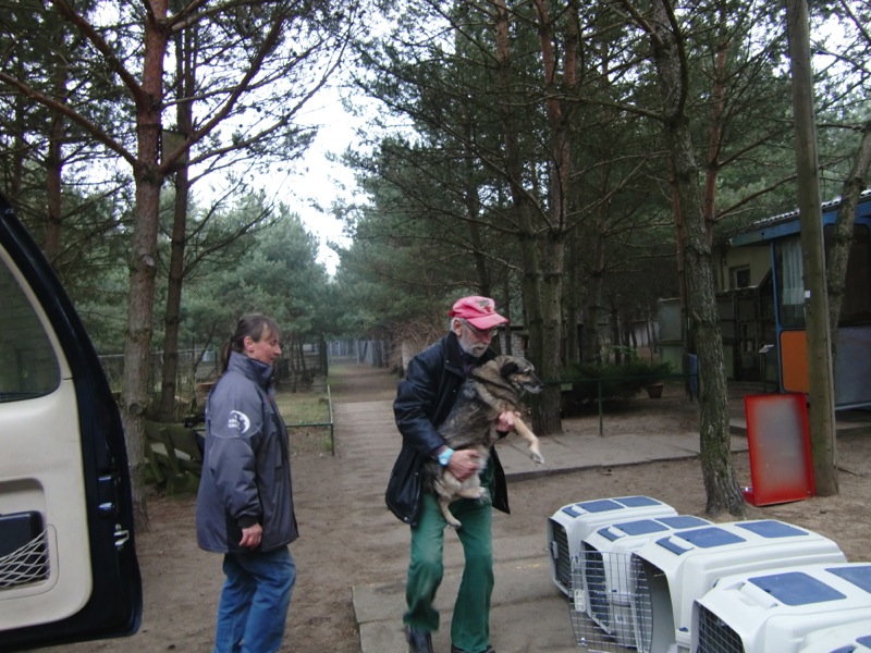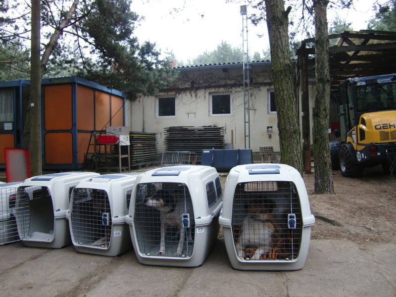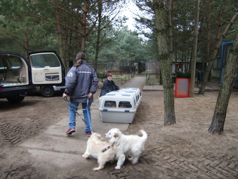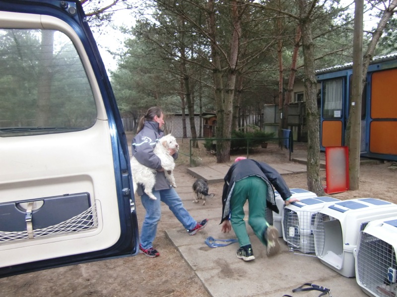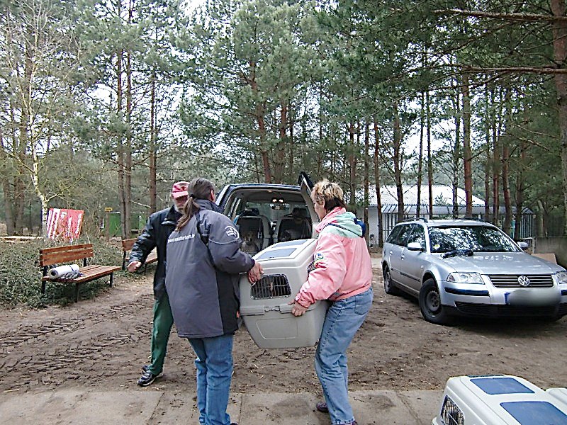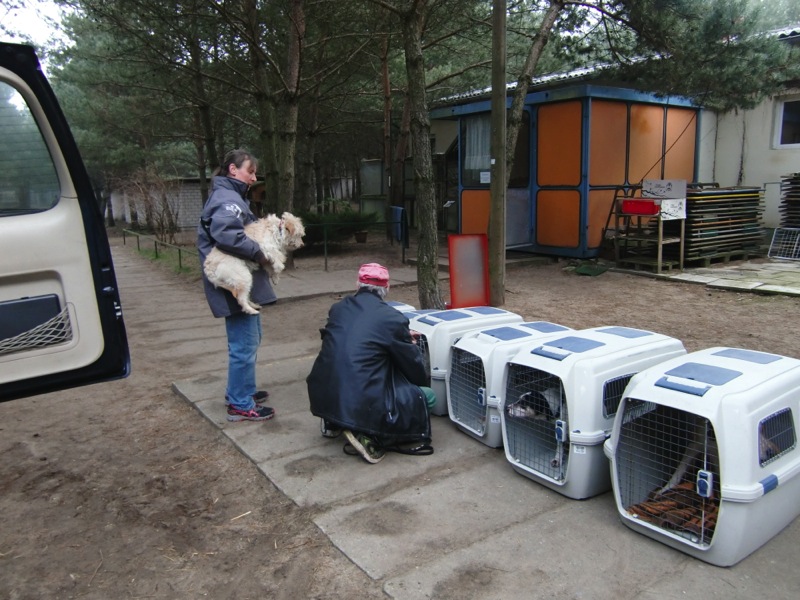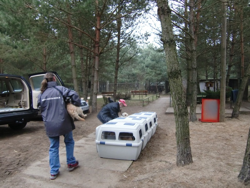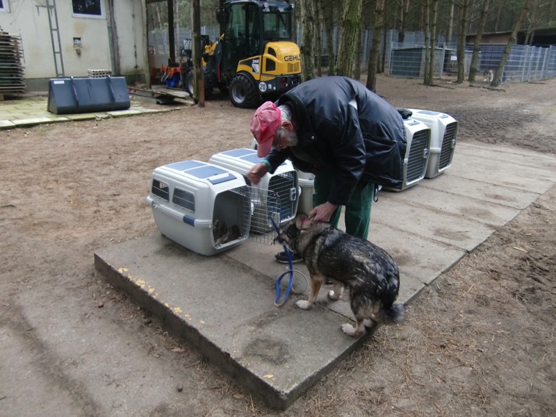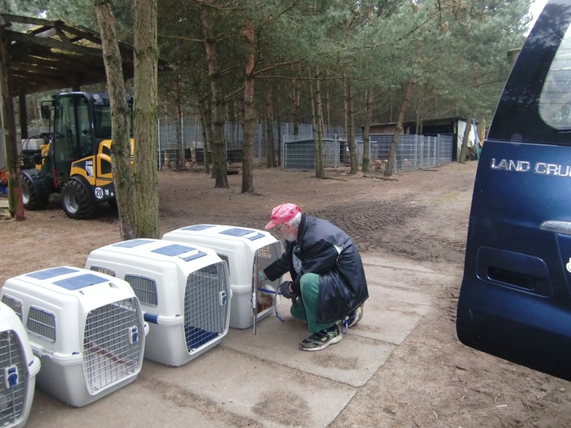 Und da wir kein größeres Transportfahrzeug mehr haben - es ist seit Jahren irreparabel kaputt - mussten wir wie schon so oft unsere Ehrenamtler um Hilfe bitten. Harriet und Detlef waren sofort wieder zur Stelle, so dass wir alle Hunde einladen konnten.