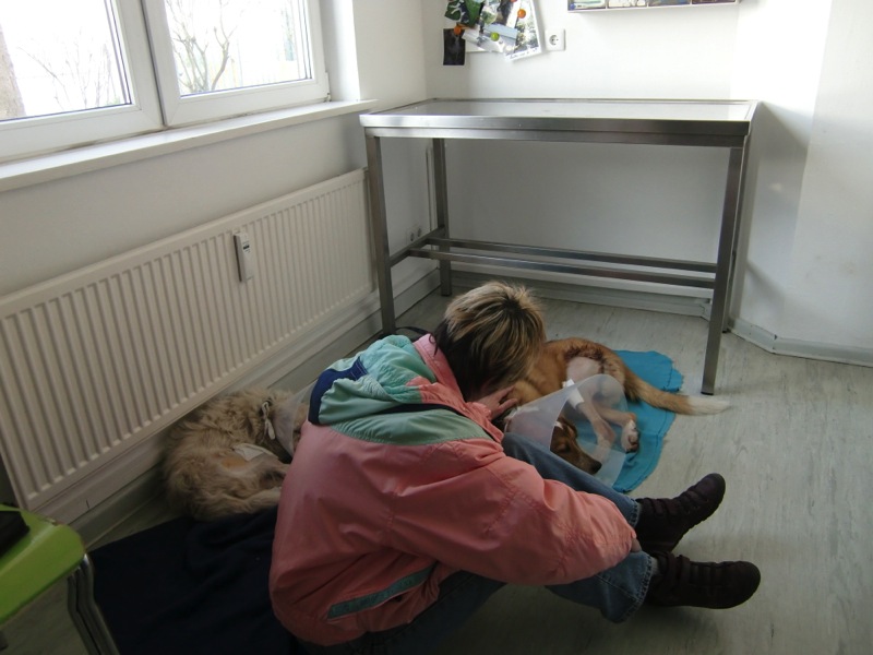 Tiere, die wir aufnehmen, werden von unserer Tierärztin gecheckt und wenn nötig behandelt. Bei manchen Krankheitsbildern müssen wir allerdings zum Spezialarzt. So sind wir inzwischen Dauergast bei einem Chirurgen in Berlin.