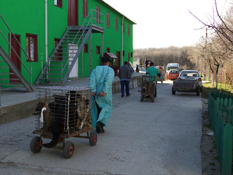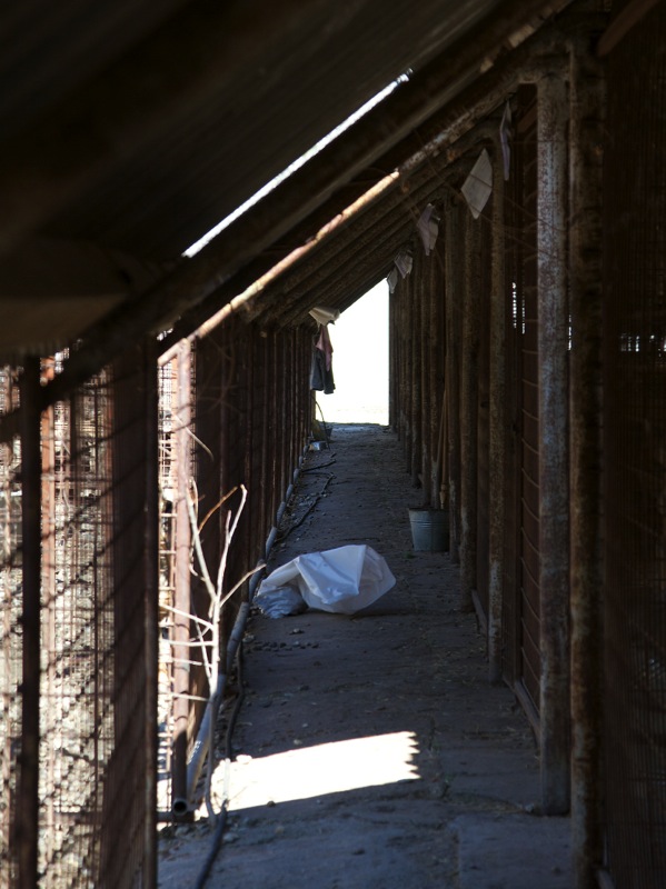 Der Gang zwischen diesen Reihen ist gerade mal so breit, dass eine Schubkarre durchpasst. Die Dächer sind so niedrig, dass ich mich mit meinen 160cm gerade nicht ducken muss. Es ist ein sehr beklemmendes Gefühl, sich durch diese Gänge zu zwängen. Vor allem, wenn links und rechts die Hunde in die Gitter springen und um Aufmerksamkeit betteln.