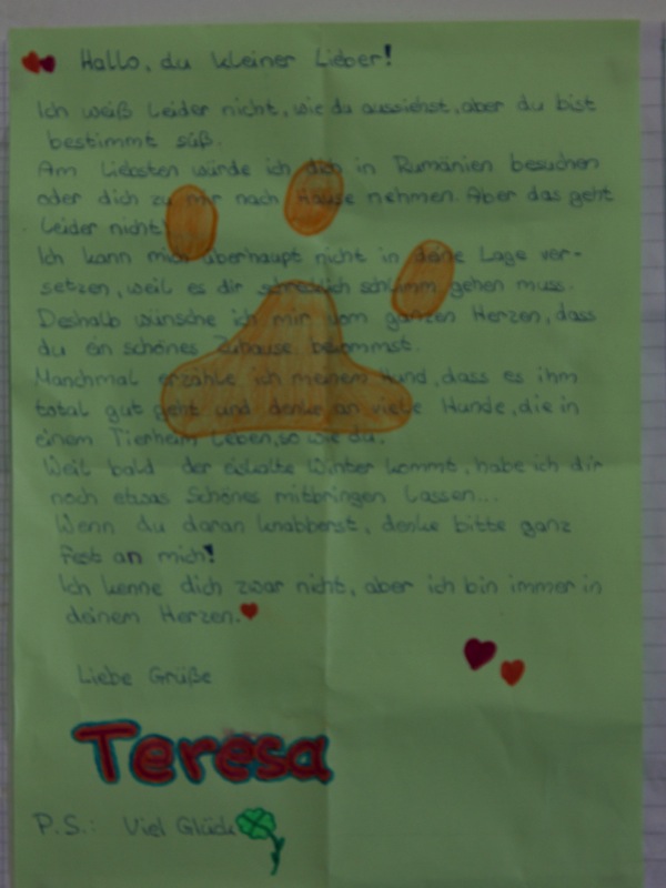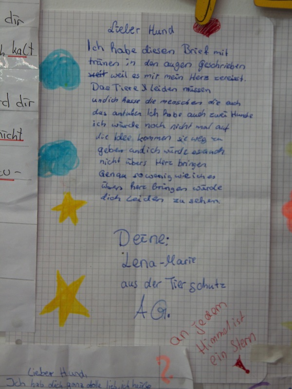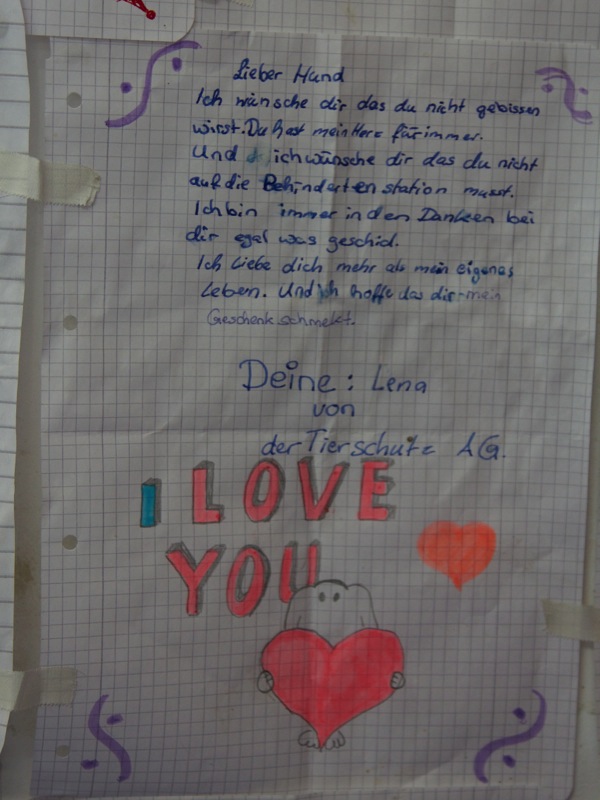 In der Tierarztpraxis hingen auch diverse Briefe deutscher Kinder und rührten einen zu Tränen. Auf den Fotos können Sie sich diese gerne anschauen.
