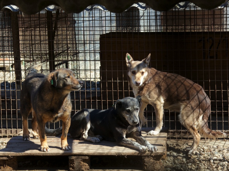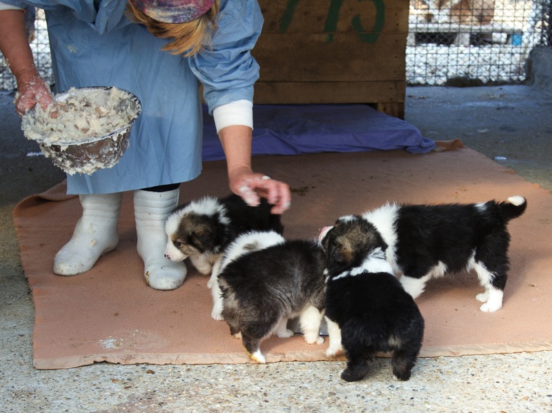 Jeden Tag kümmern sich die Pfleger um die Hunde, jeder Hund bekommt sein Futter, die Zwinger werden gesäubert.