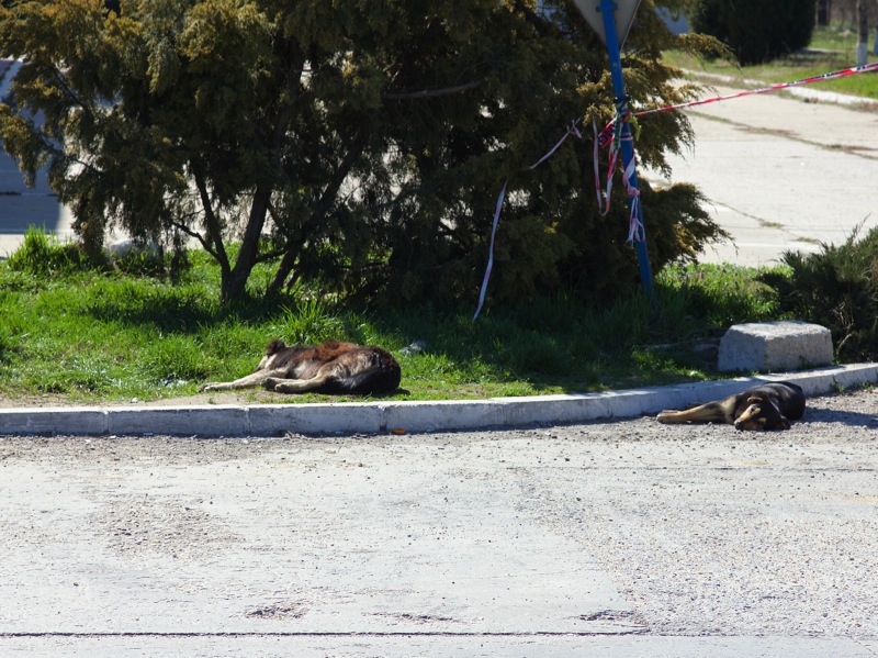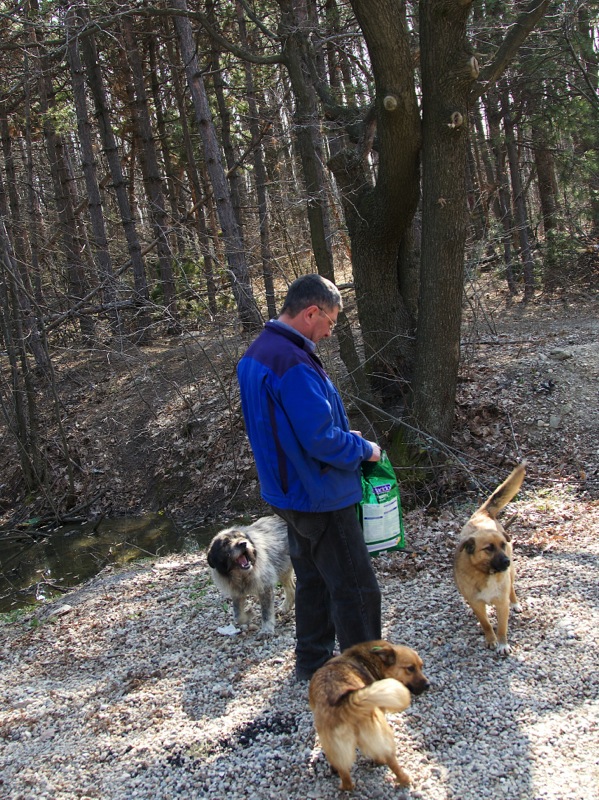 Viele davon leben in den Wäldern um die Smeura herum. Viele trauten sich nicht raus: sie merkten sehr wohl unsere Anwesenheit. Aber einige warteten bereits auf ihr Futter. Der Fahrer durfte nah an sie ran. Fremde wurden deutlich verbellt. Und man sieht auch, dass viele gut genährt sind.