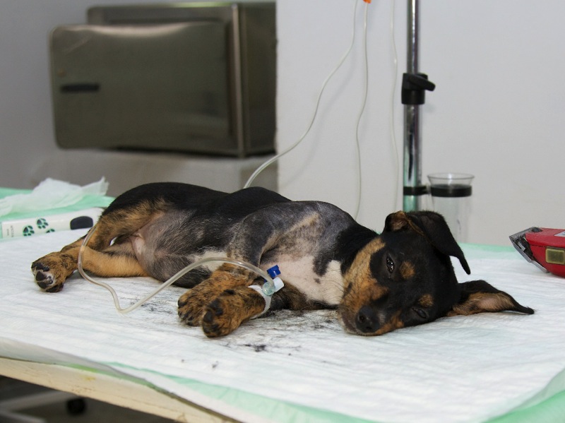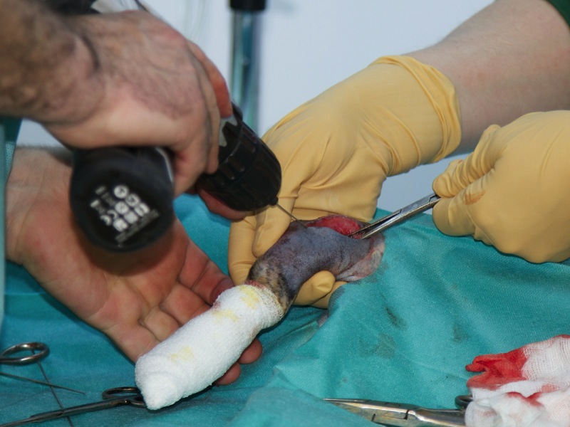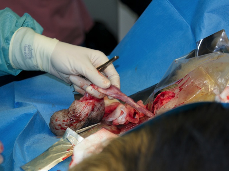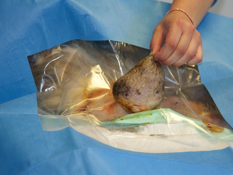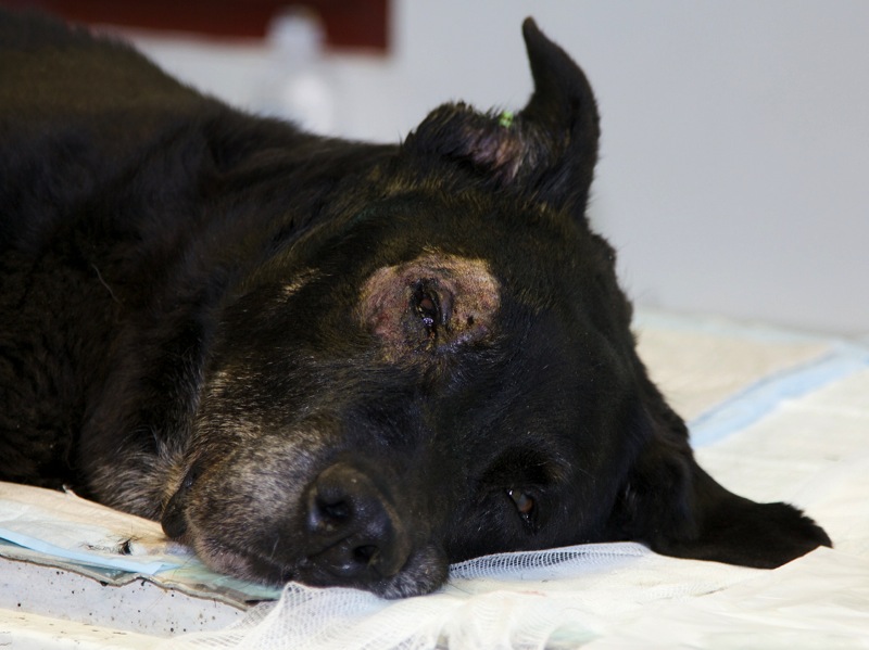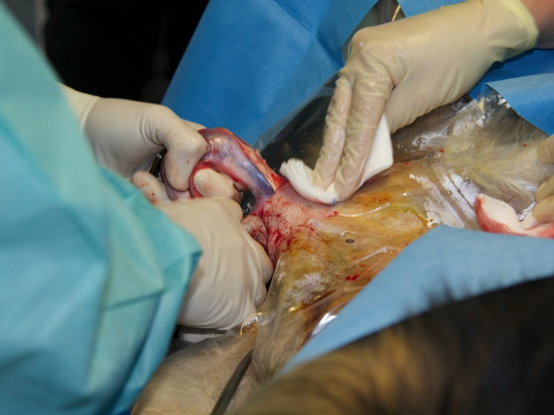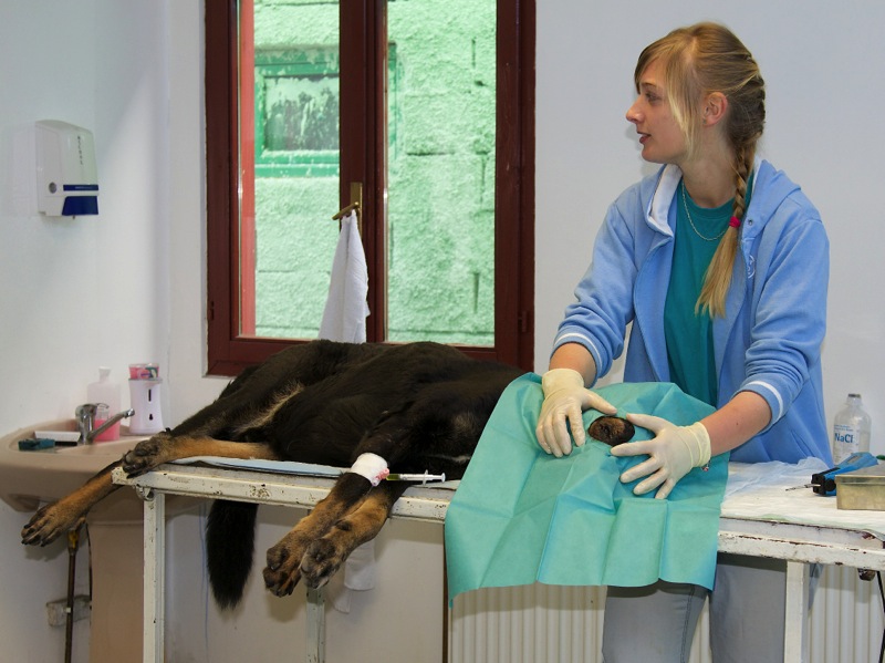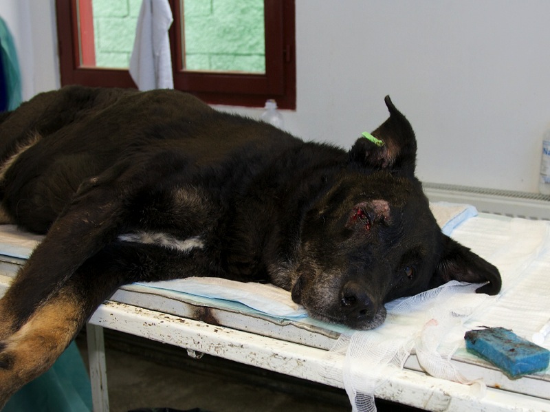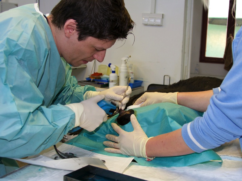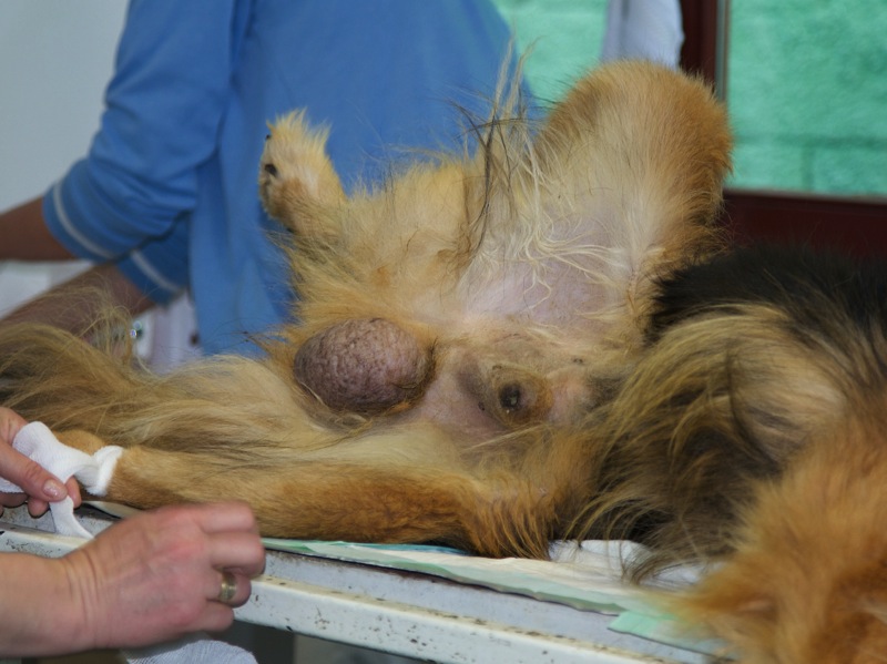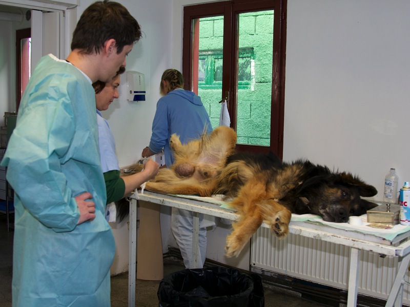 Aber nicht nur Kastrationen, sondern auch jede andere OP wird dort durchgeführt: Beinbrüche, Lidrandtumore, Halswunden von Strangulationen, Bisswunden und Amputationen - einfach alles gehört dort fast zur Tagesordnung. Einem alten Schäfi wurde ein entarteter Hoden entfernt. Bei der OP bemerkten sie einen weiteren Tumor im Bauchraum. Dieser wurde dann auch noch entfernt.