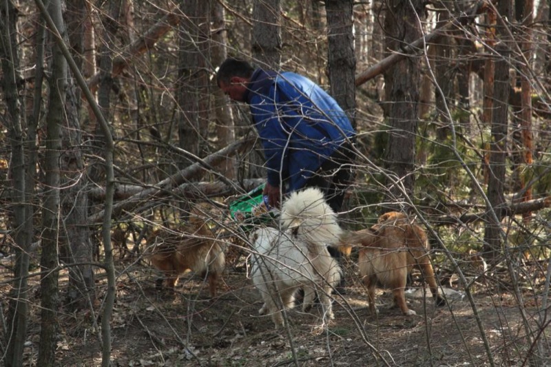 Vorher konnten wir aber noch unseren Fahrer dabei begleiten, wie er jeden Tag! die Waldhunde füttert.