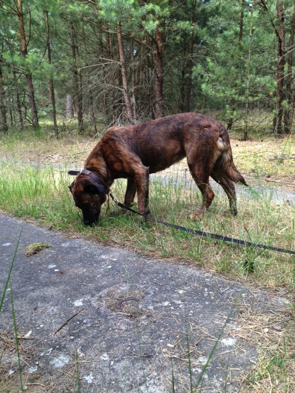 Natürlich fällt auch immer mal eine Extra-Einheit für Dwighty ab. Er ist zwar nicht ängstlich und auch ansonsten nicht besonders schwierig, aber als Langzeitinsasse bekommt er bei uns natürlich zusätzliche Zuwendung, die er immer sichtlich genießt.