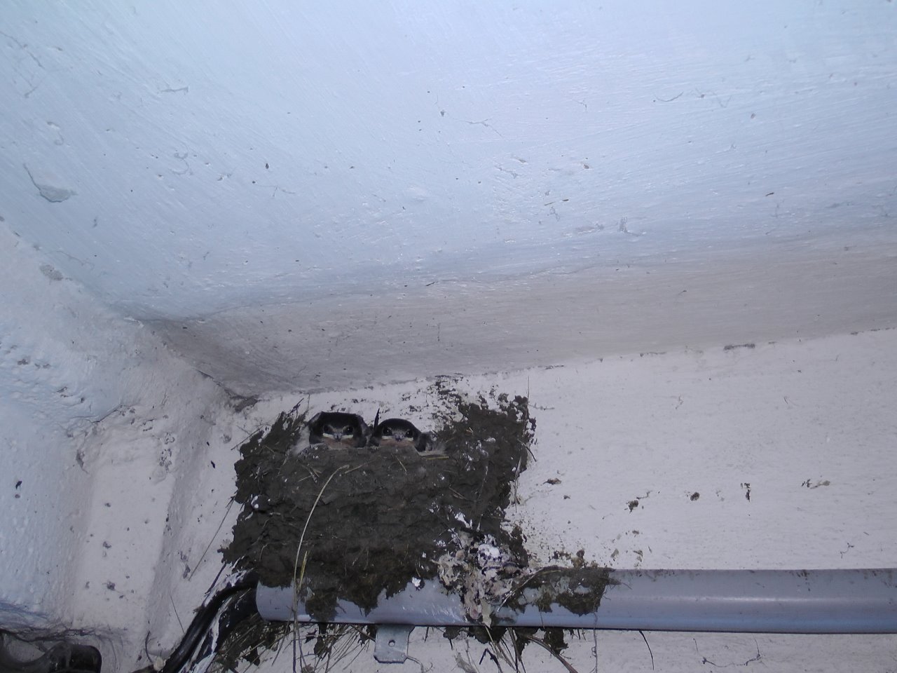 In einem leerstehenden Gebäude siedelten sich in diesem Sommer Schwalben an und zogen in mehreren Nestern ihre Jungen auf.