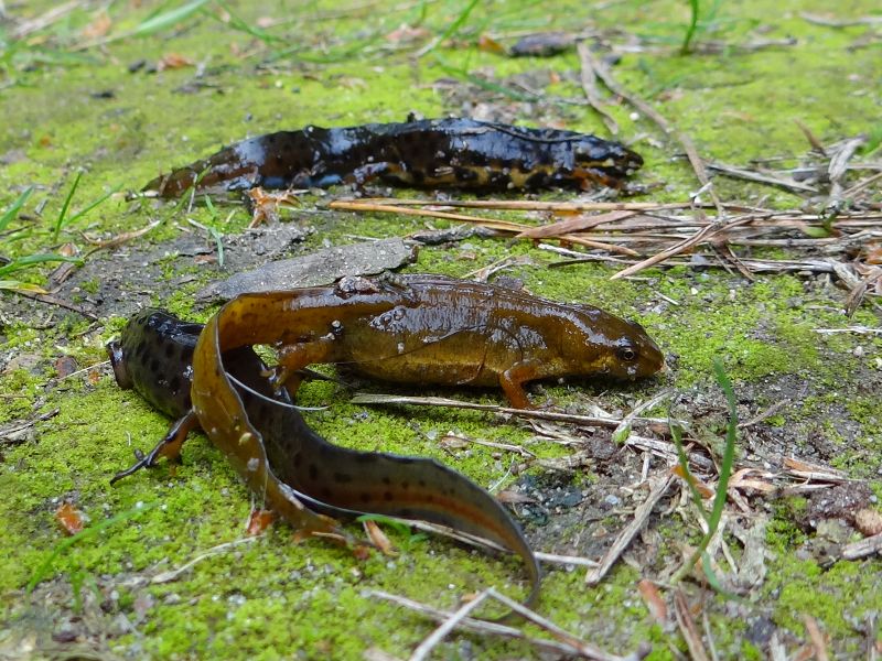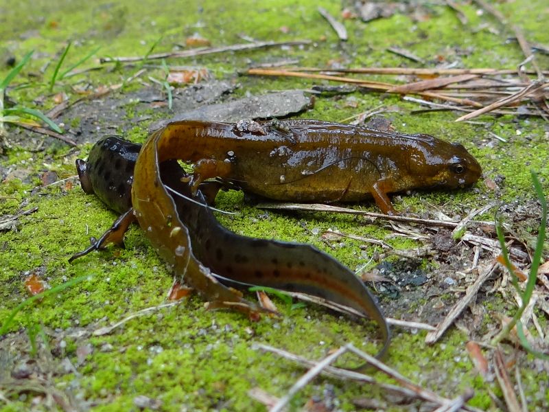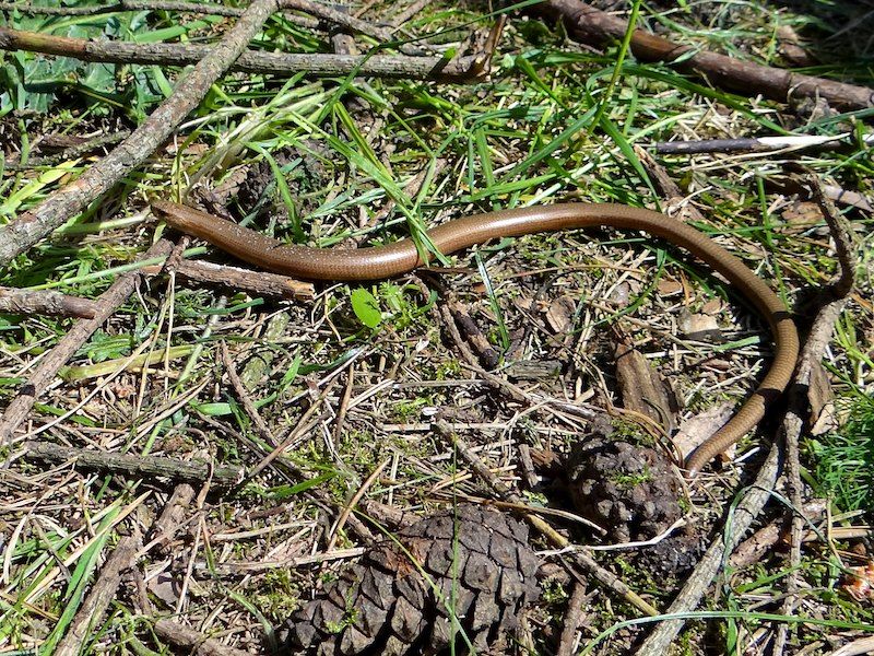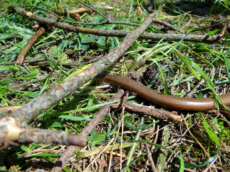Die Blindschleiche schaute aus den Platten eines Hundegeheges hervor und wollte wissen, was beim Handwerkertag los war. Die kleine Echse wohnt mit vielen ihrer Verwandten bei uns. Besonders in der Nähe der großen Reisighaufen entdecken wir immer wieder welche. Auch Zauneidechsen können wir ab und zu beim Sonnenbad sichten.