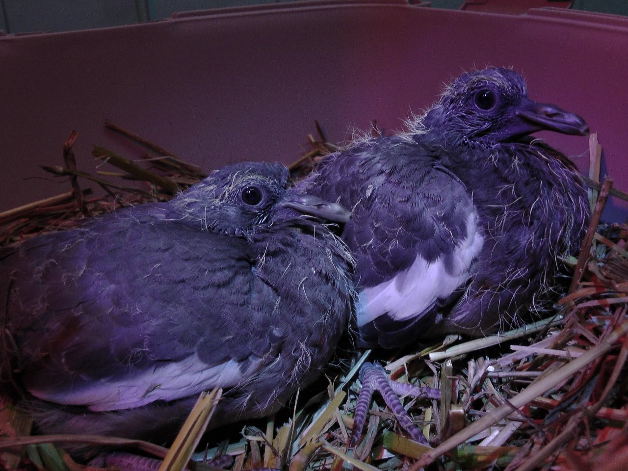 Wir hatten Sorge, weil ein Täubchen schon recht malade wirkte. Doch mit Wärmelampe und schnell eingerührtem Spezialbrei gewannen sie wieder an Kraft.