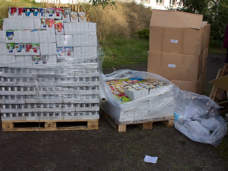 Vier Paletten haben vom Gewicht her nicht mehr auf den LKW gepasst. Wir nehmen sie als Grundstock für den nächsten Transport und hoffen wieder auf so vielfältige Unterstützung.