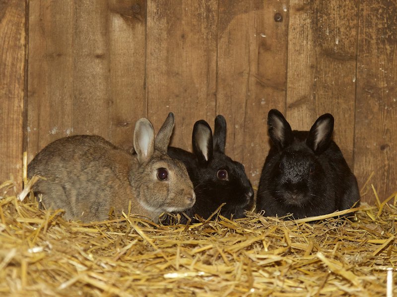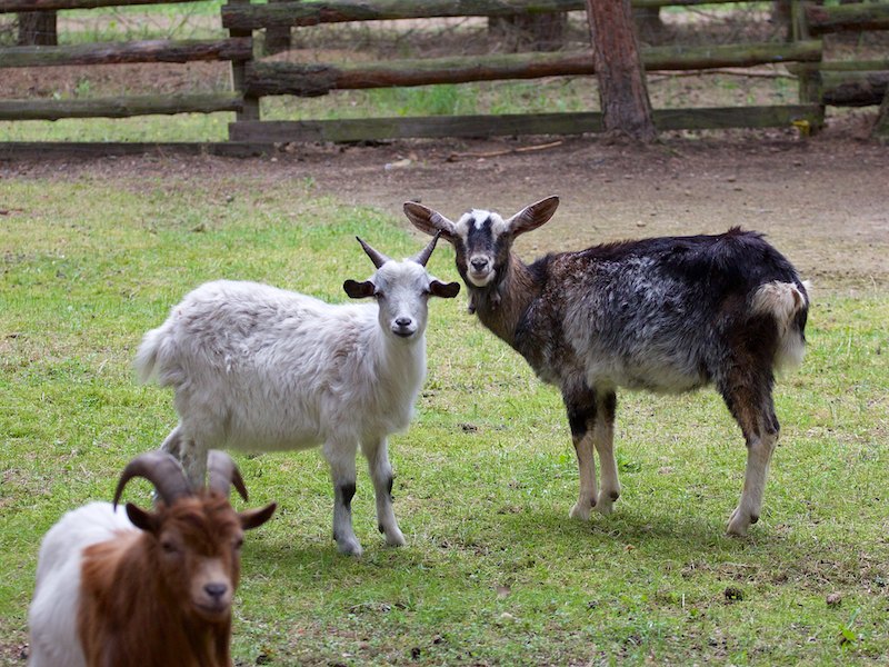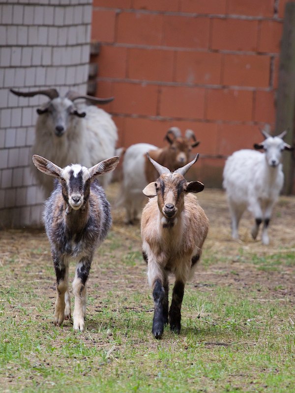 Wir haben mehrere Gruppen Kaninchen und auch Meerschweinchen. Dann unsere Ziegen, die tüchtig zuschlagen und jeden Tag Unmengen wegfressen.