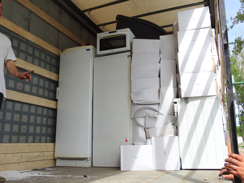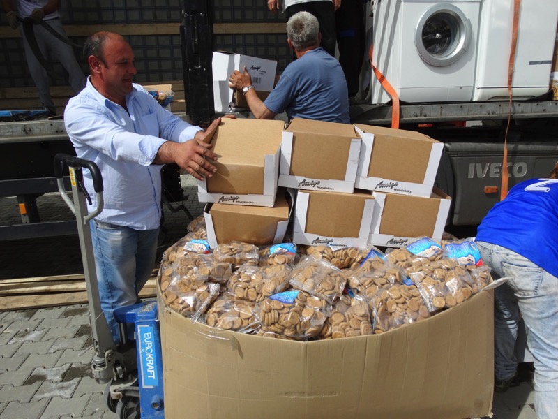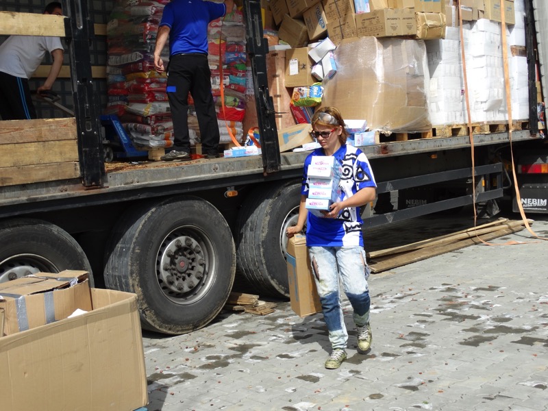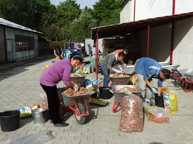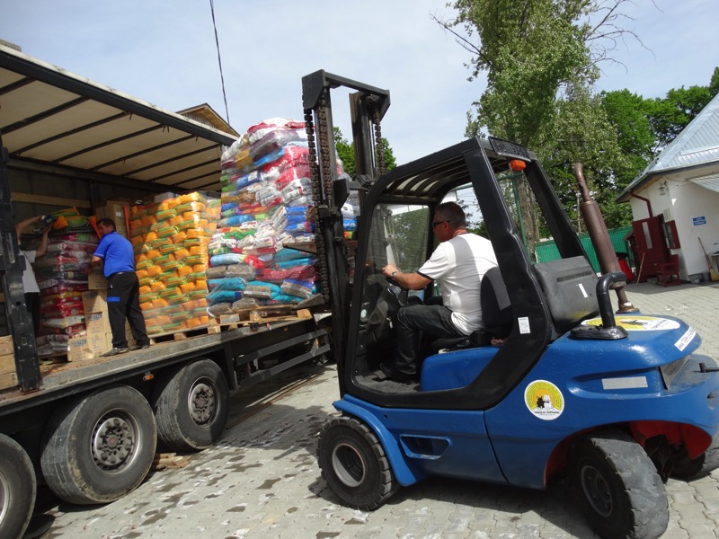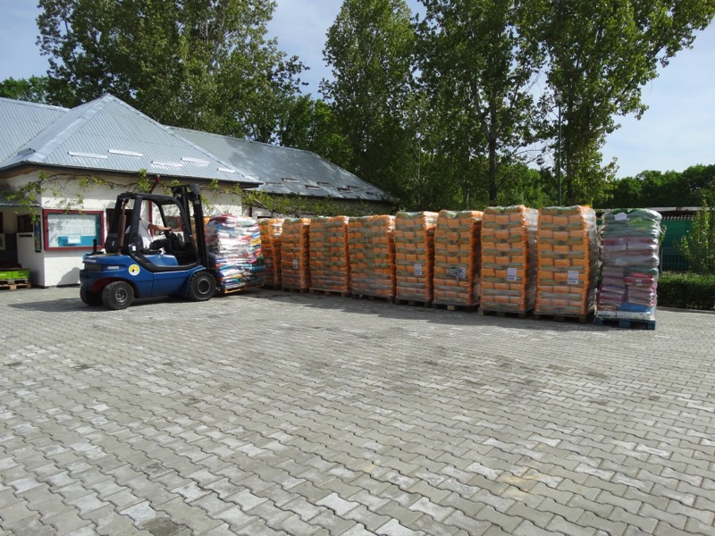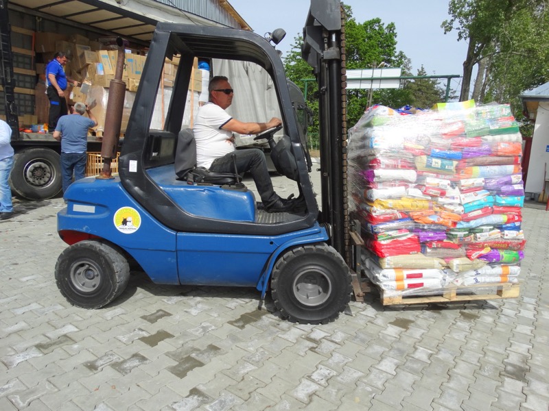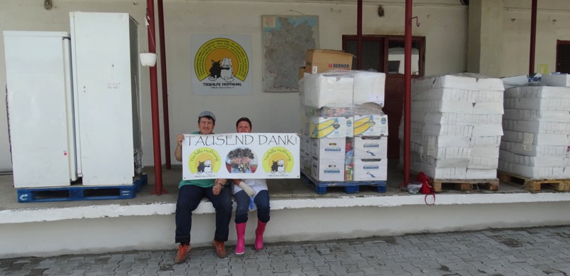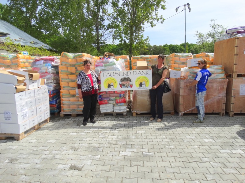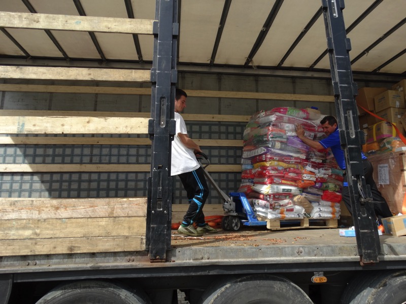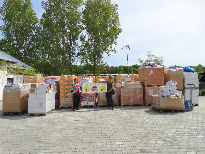 Ja, es war eine riesige Ladung. Aber wir sind sicher, es ist alles von den über 5.000 Tieren dort schneller aufgegessen, als wir hier die Fotos vom Entladen einstellen können. Man mag sich die Dimensionen der Bedürftigkeit nicht vorstellen.