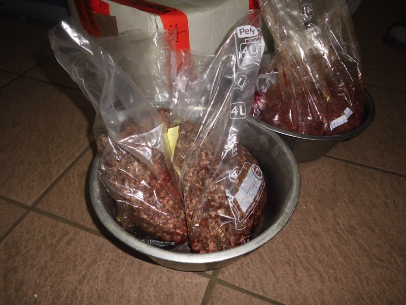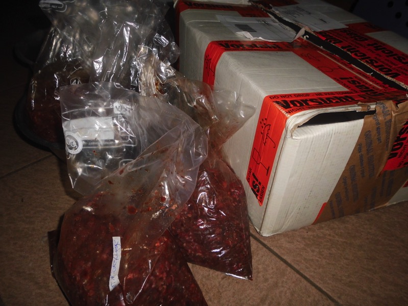 Eine liebe Tierfreundin aus Westdeutschland schickt uns ab und zu ein Riesenpaket Frischfleisch. Es kommt immer ganz schnell und dadurch noch gut gefroren an - ist also absolut frisch.