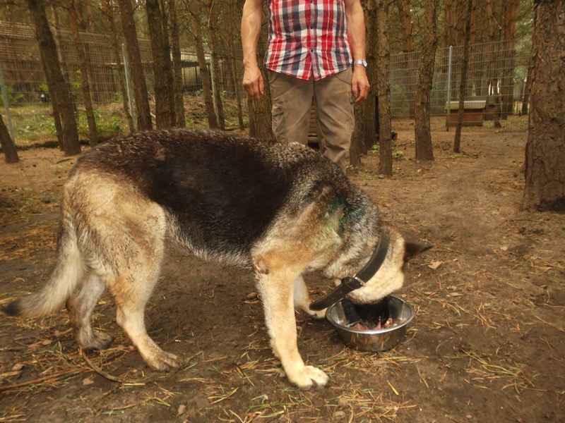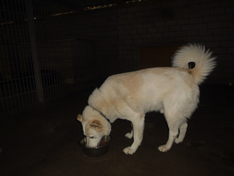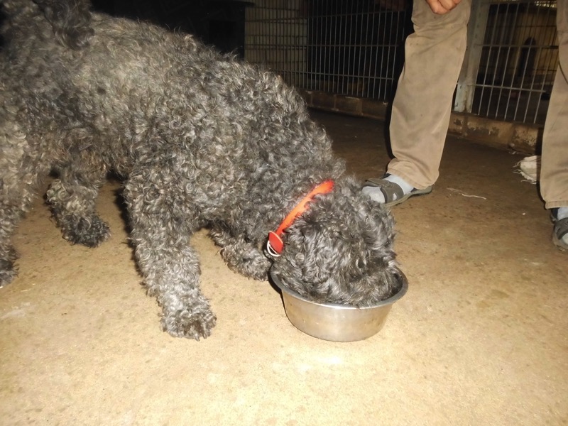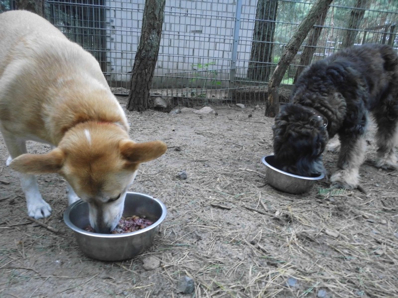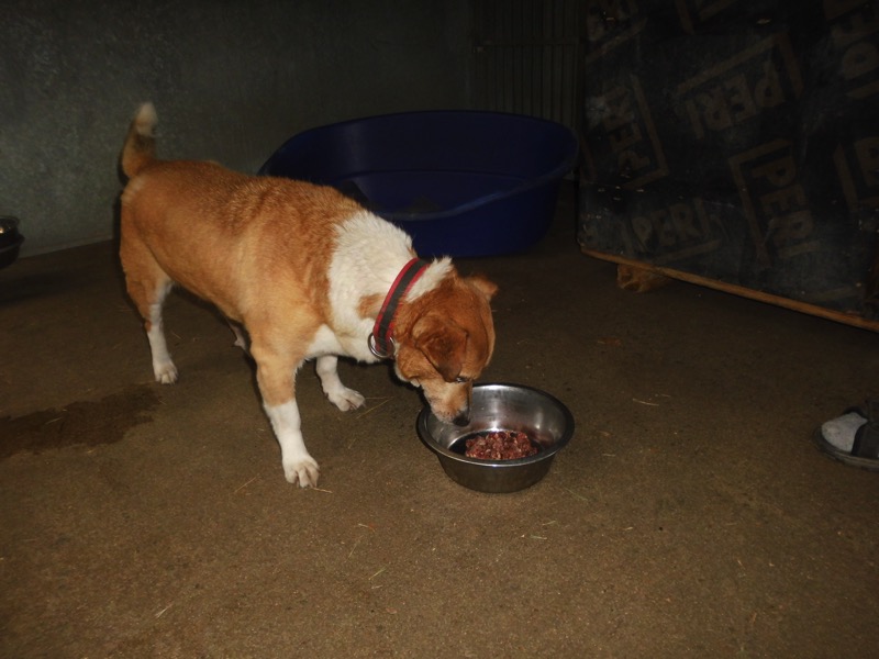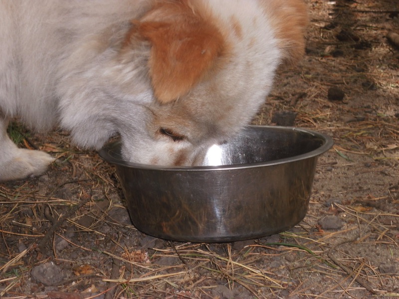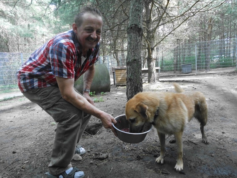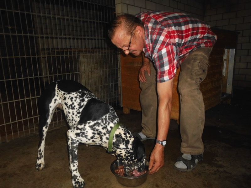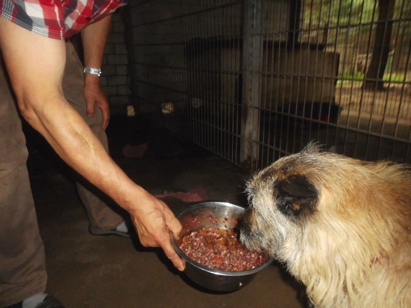 Bei 70 Hunden bekommt dann jeder ein Schmankerl oben auf das Trockenfutter und die älteren und kränklichen werden bevorzugt und erhalten eine ganze Schüssel.