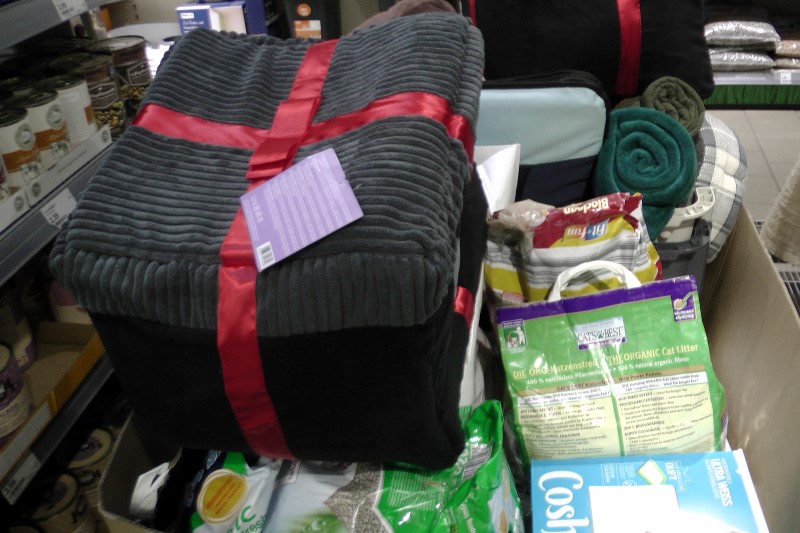 Auch die Katzenstreu hatten wir sehnlichst erwartet, denn wir waren vor Weihnachten völlig abgebrannt mit unseren Vorräten.