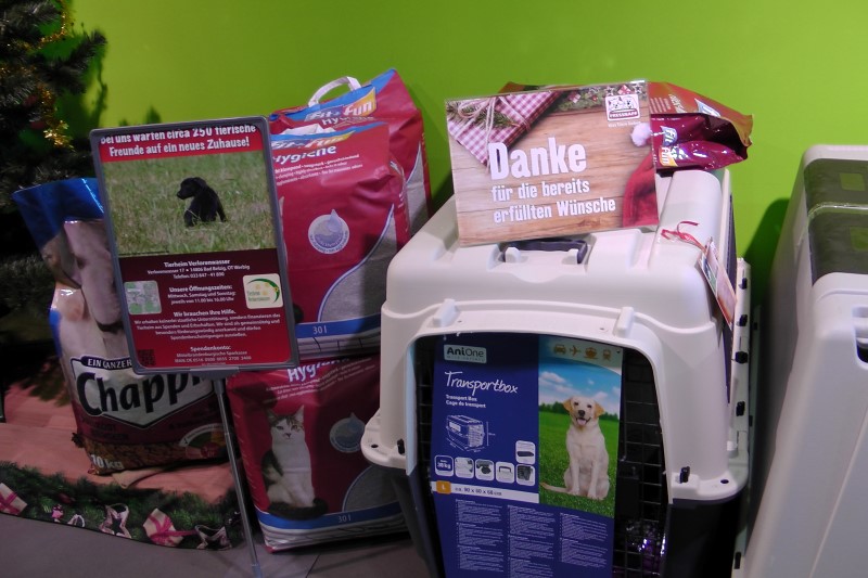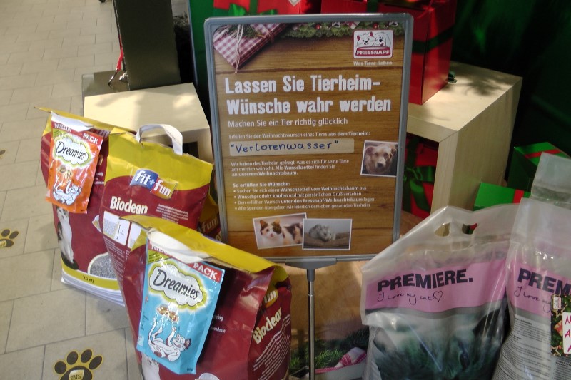 Der Fressnapf Berlin führte im Dezember das erste Mal eine Weihnachtsbaumaktion mit Wünschen von Tierheimtieren durch.