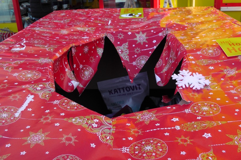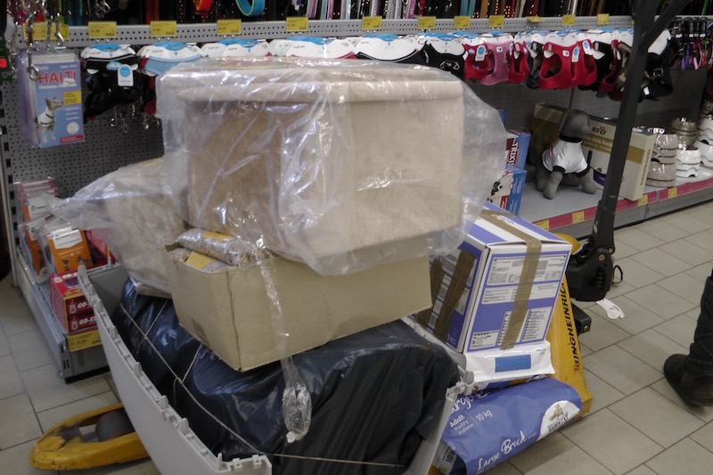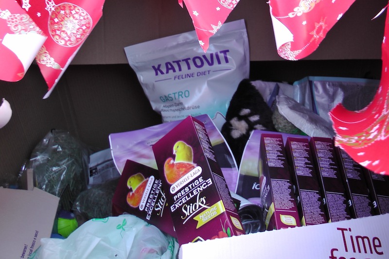 Sogar ein riesiges Geschenkpaket, das Tierfreunde reichlichst füllten, durften wir nebst weiterer Spenden abholen.