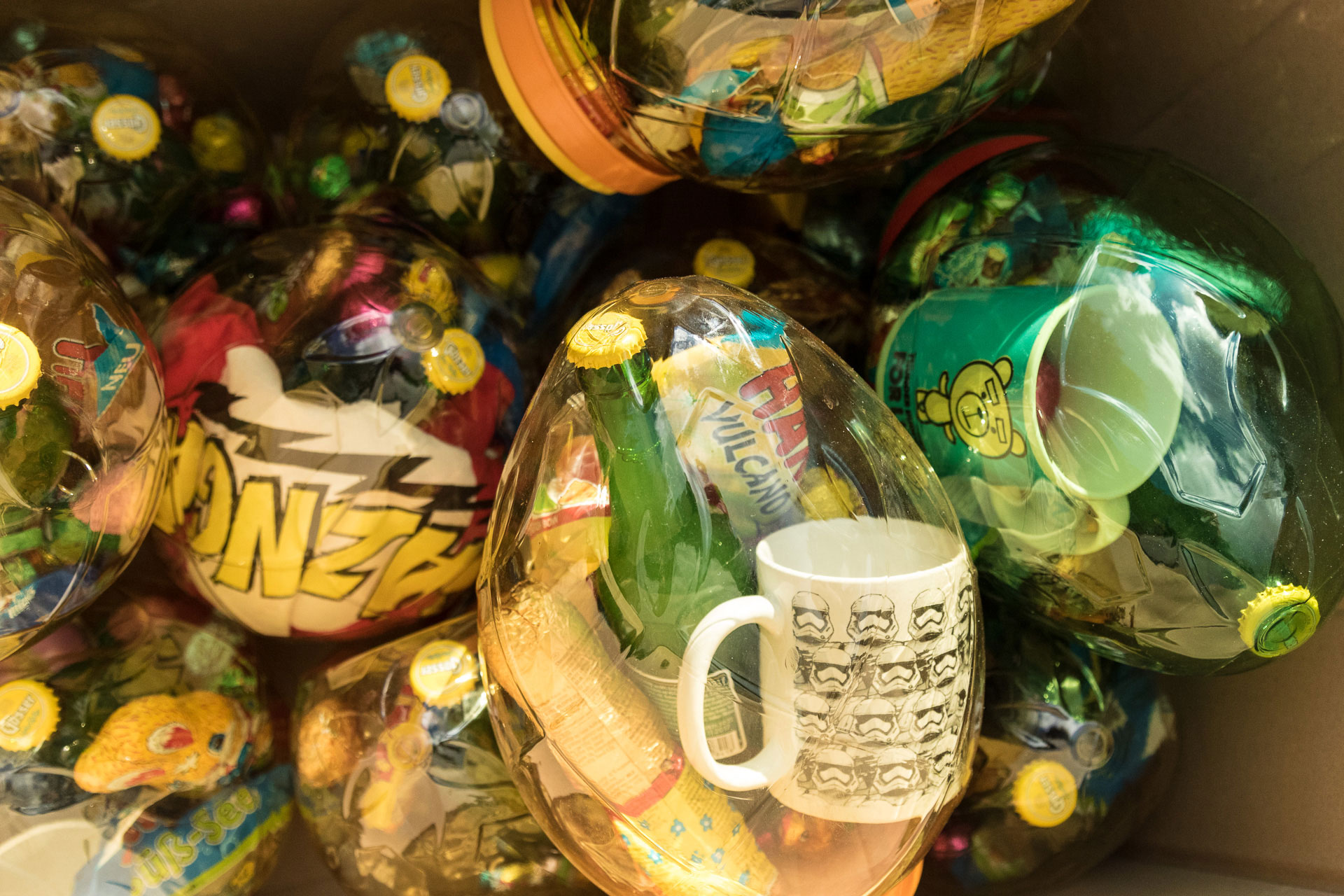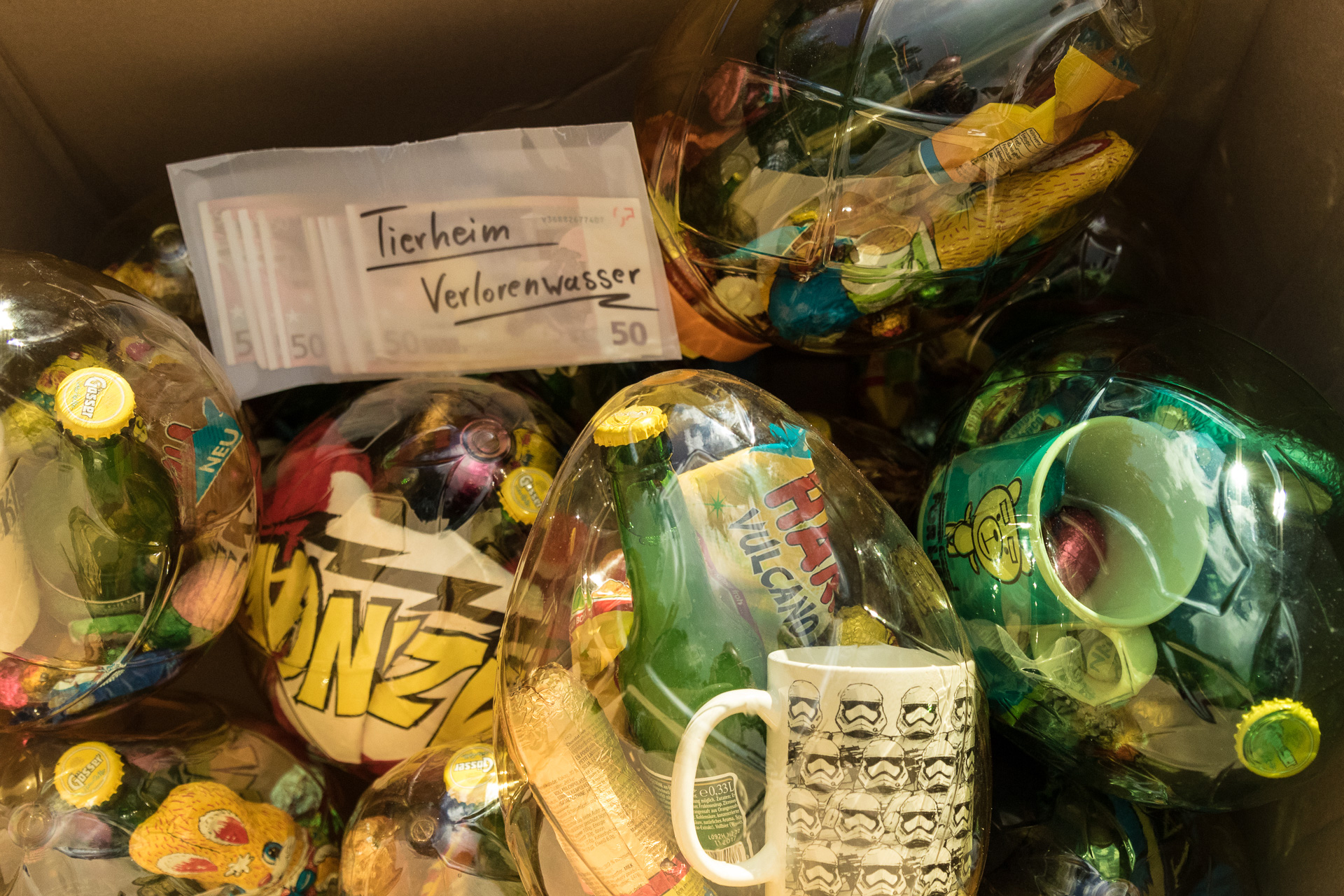Der große Karton enthielt Eier für alle Mitarbeiter - also auch für diejenigen, die an dem Tag frei hatten.