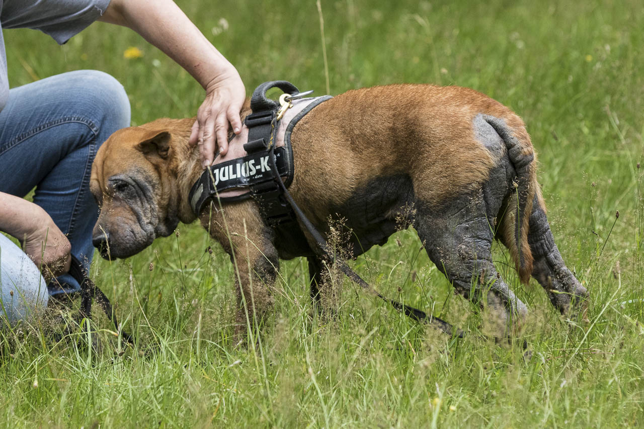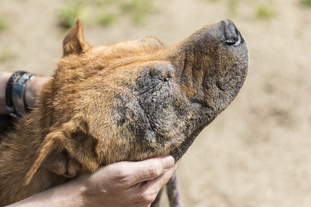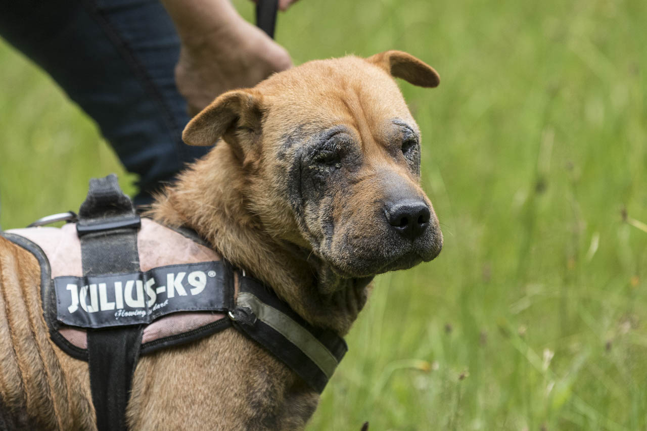 Der Vorbesitzer teilte uns mit, dass ihre Hautprobleme stressbedingt sind aufgrund eines Umzugs vor eineinhalb Jahren. Einen Tierarzt hat die Hündin aber schon ewig nicht mehr gesehen.
