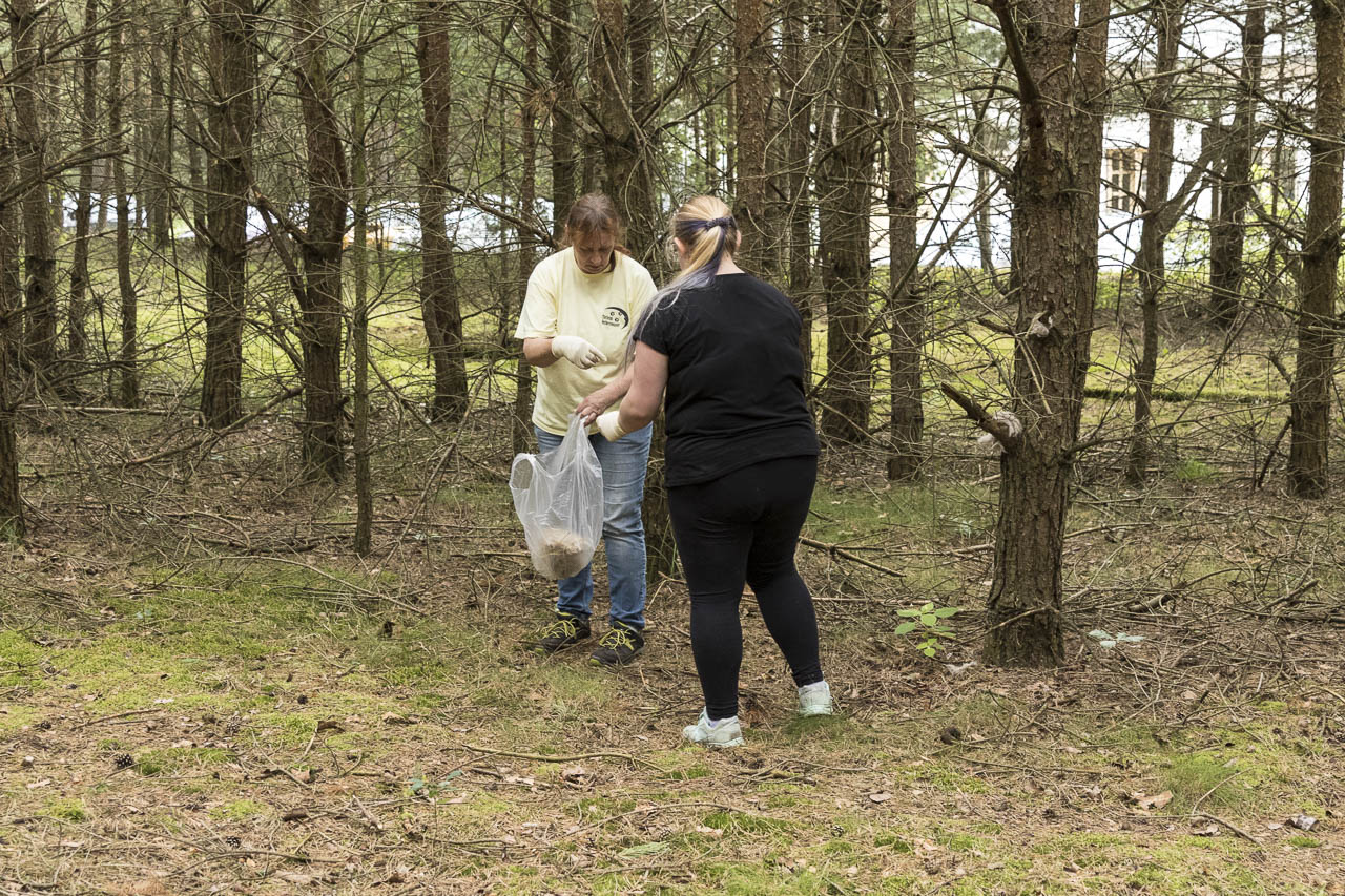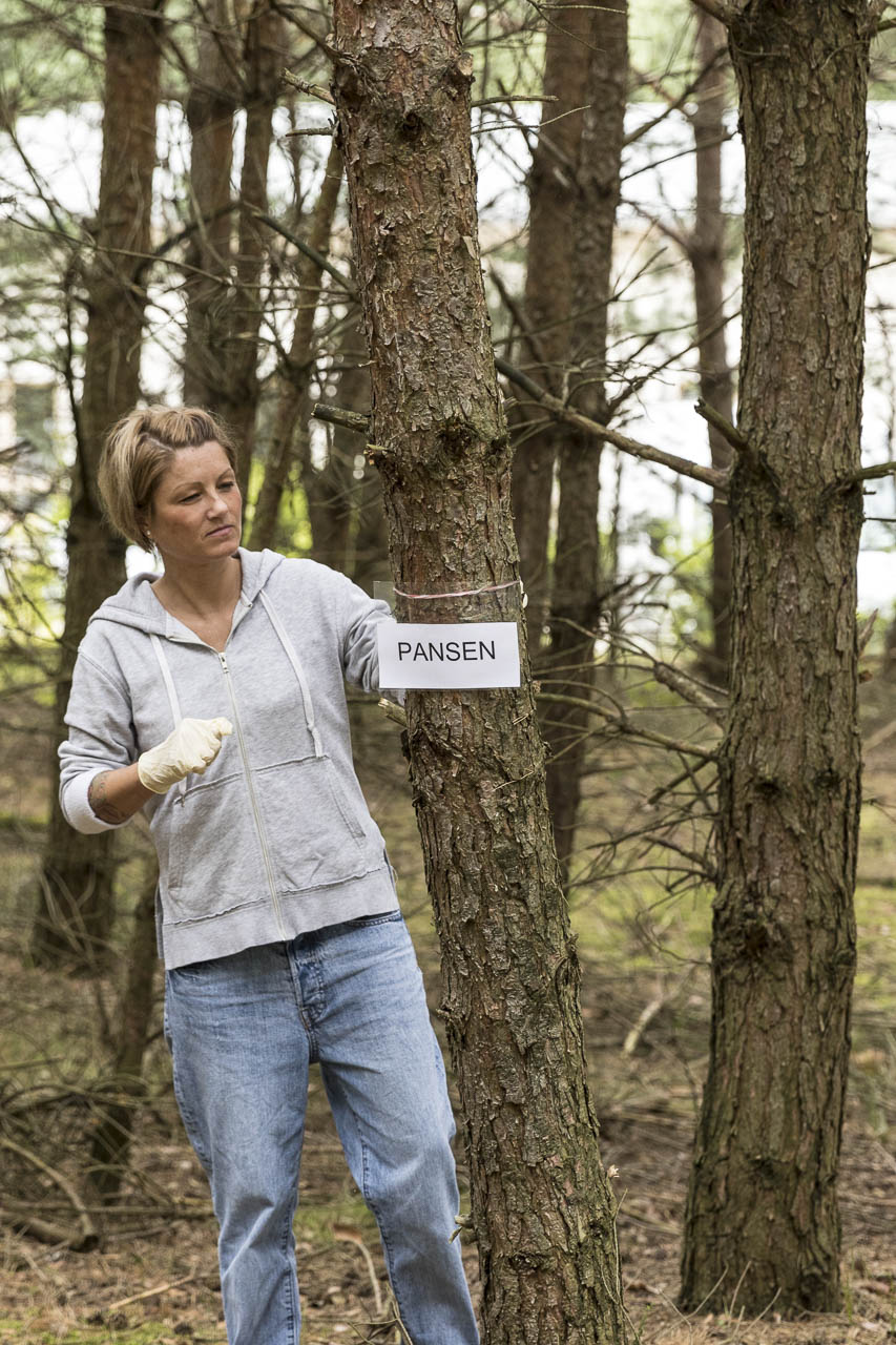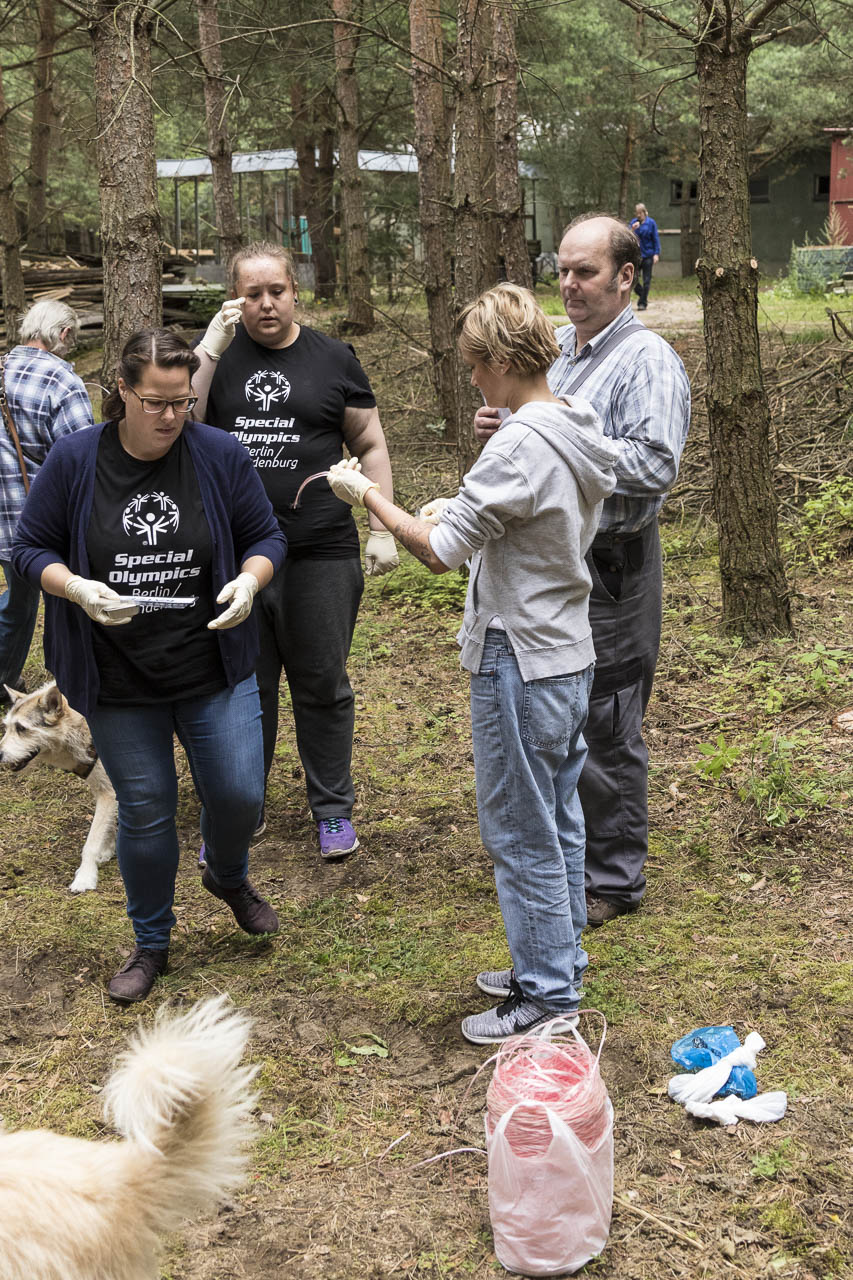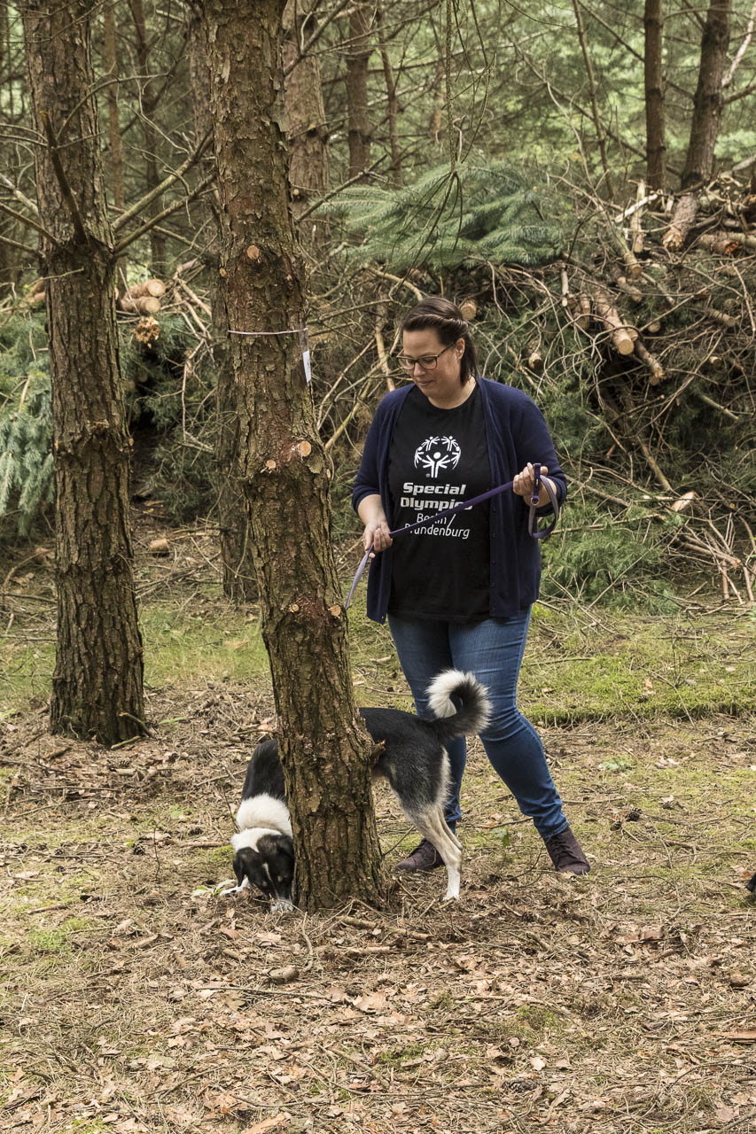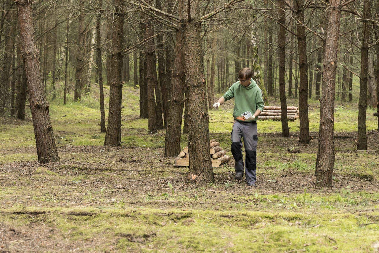 Zuvor hatten wir einige Bäume mit herrlich stinkenden Aromen "parfümiert": Kot von Wild, Schaf und Schwein, Katzenfutter, Schafwolle, Pansen und alter Fisch. Dieser kam besonders gut an. Die Bäume haben wir beschriftet, damit unsere Mitarbeiter wissen, wo neu aromatisiert werden muss, denn die Gerüche werden sich ja verflüchtigen.