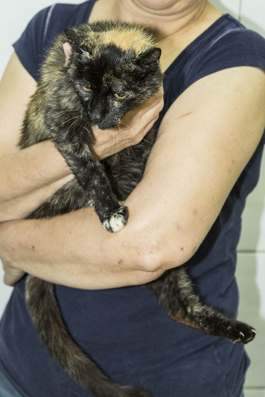 Sie war völlig abgemagert, wirklich klapperdürr. Laut unserer Tierärztin ist sie steinalt. Sie fürchtete schon, dass es auf's Einschläfern hinausläuft. Aber natürlich versuchen wir immer erst, ob wir das Tierchen wieder auf die Beine bekommen.