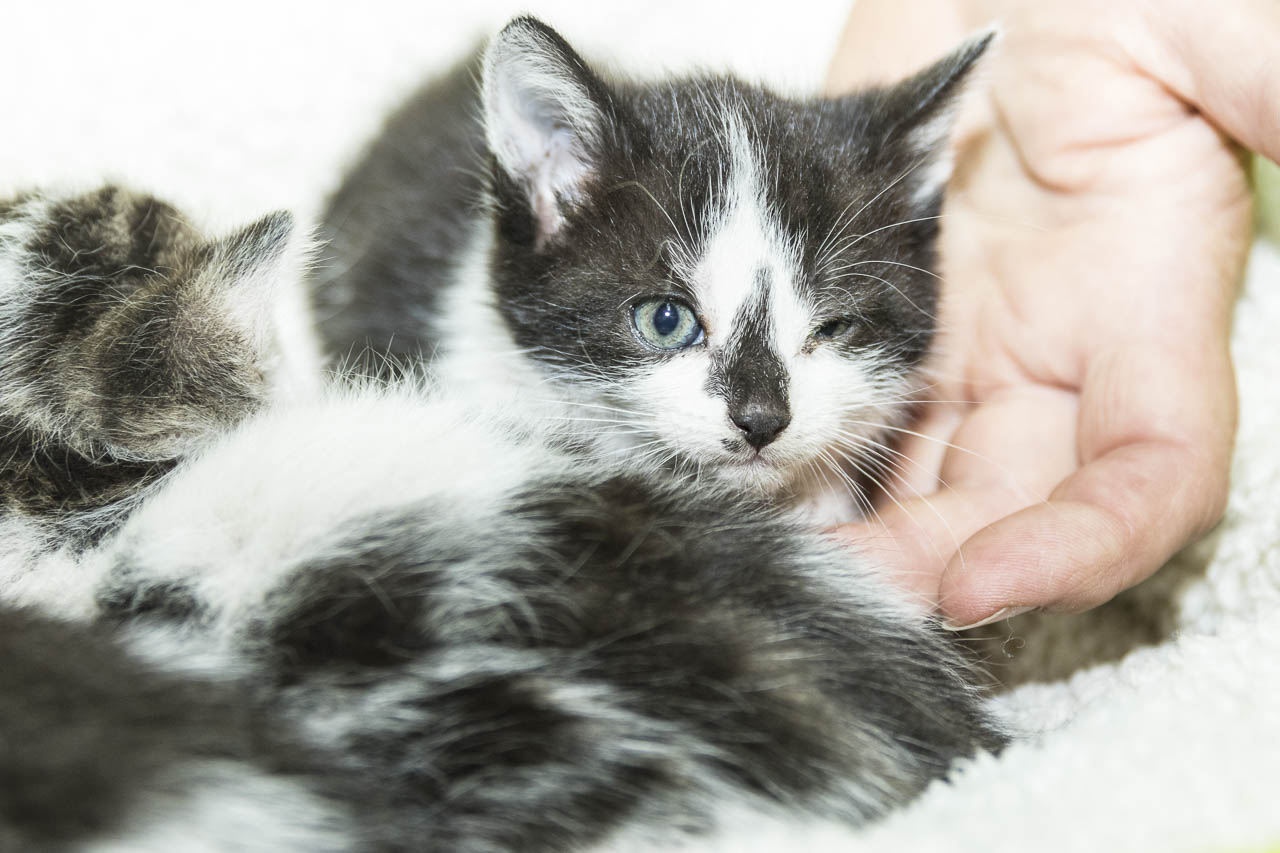 Das grau-weiße Kitten mit den helleren Öhrchen ist ein Junge.