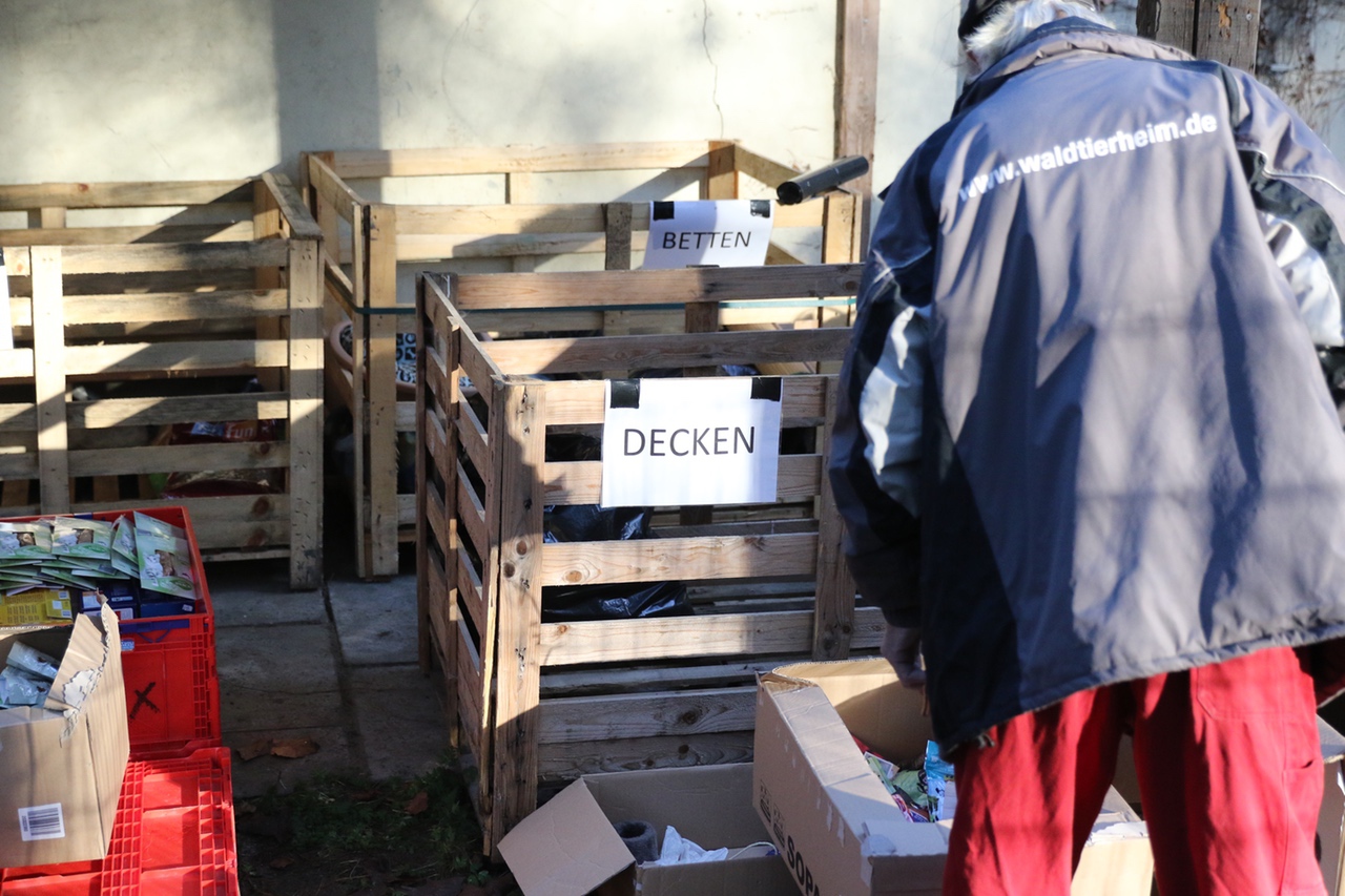 Unsere Tierpfleger tauschten in allen Unterkünften sofort die angefressenen Körbchen und zerschlissenen Decken gegen die Spenden aus.