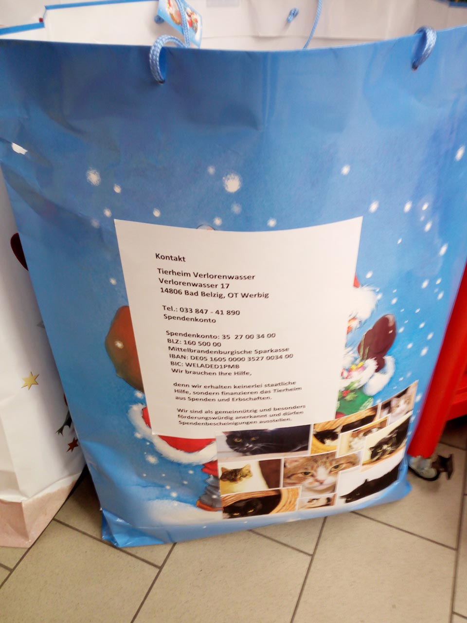 Das Futterhaus Teltow hielt ebenso wie andere Geschäfte noch reichlich Weihnachtsgeschenke für uns bereit, als unser Tierheimleiter in den letzten Tagen die Sammelcontainer leerte.