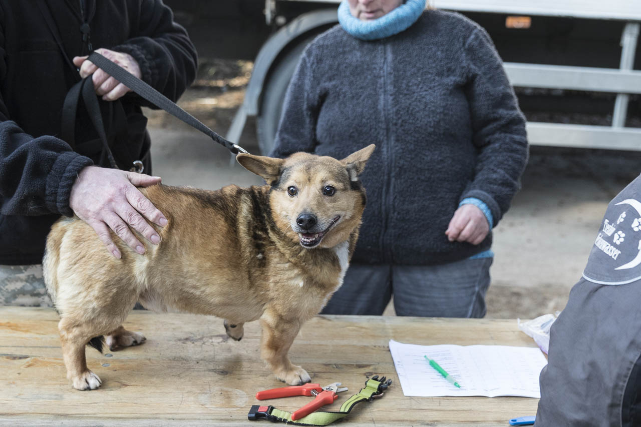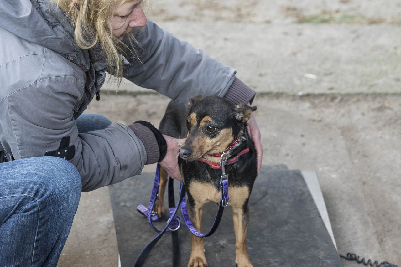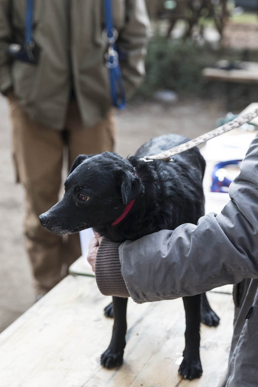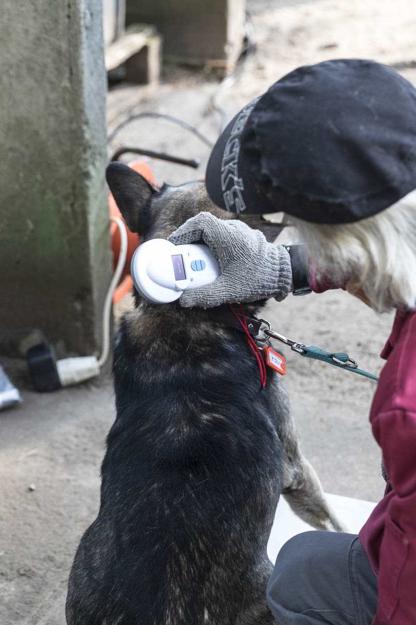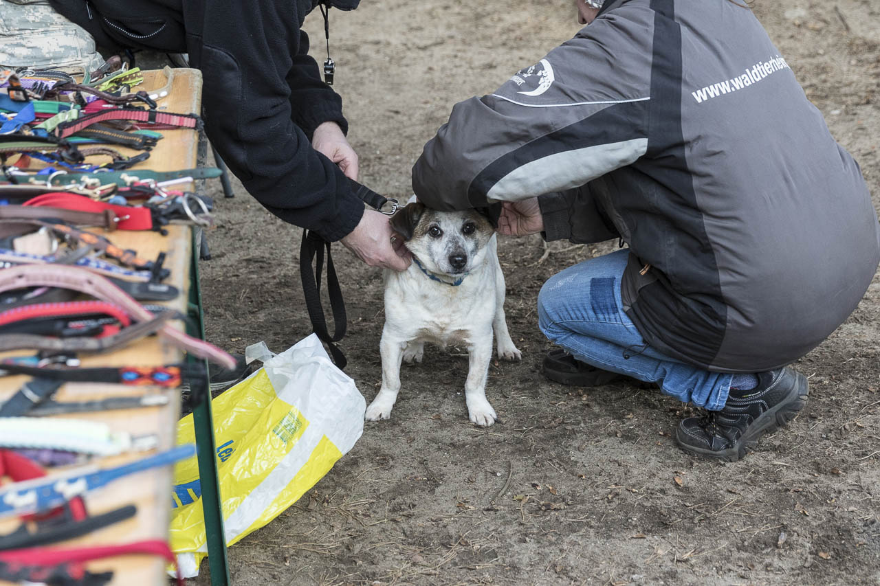 Dann ging es auf die Waage. Ein passendes Halsband musste herausgesucht werden. Der Chip wurde ausgelesen und alle Papiere verglichen.