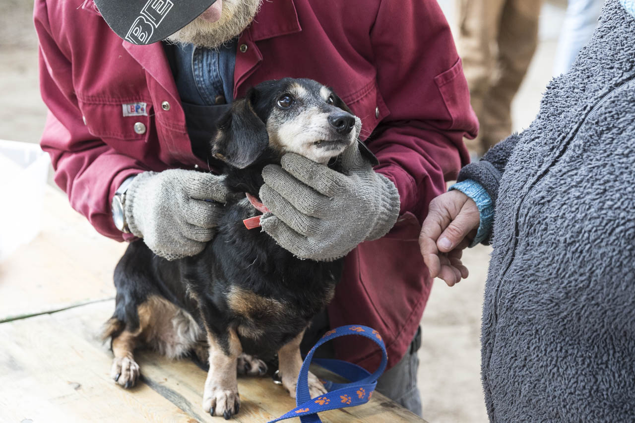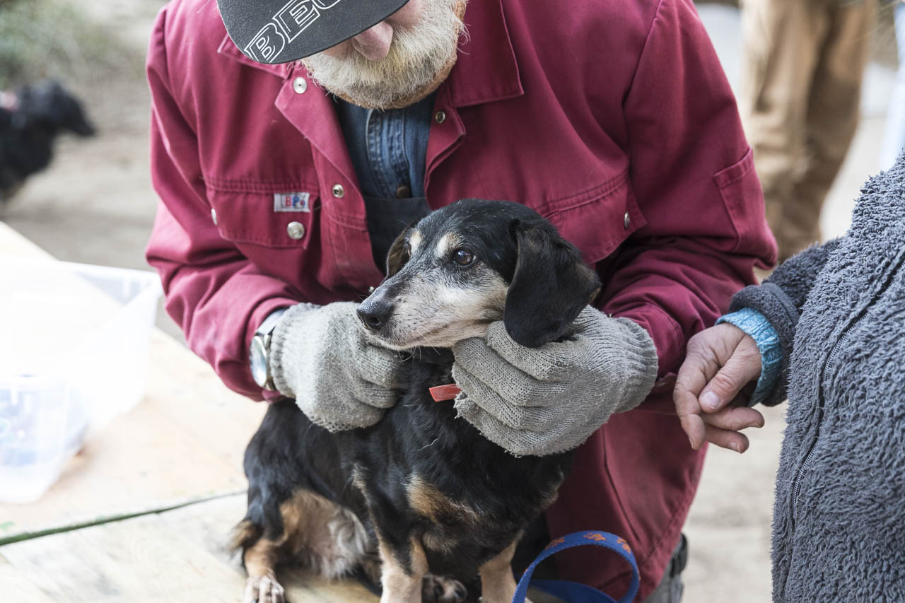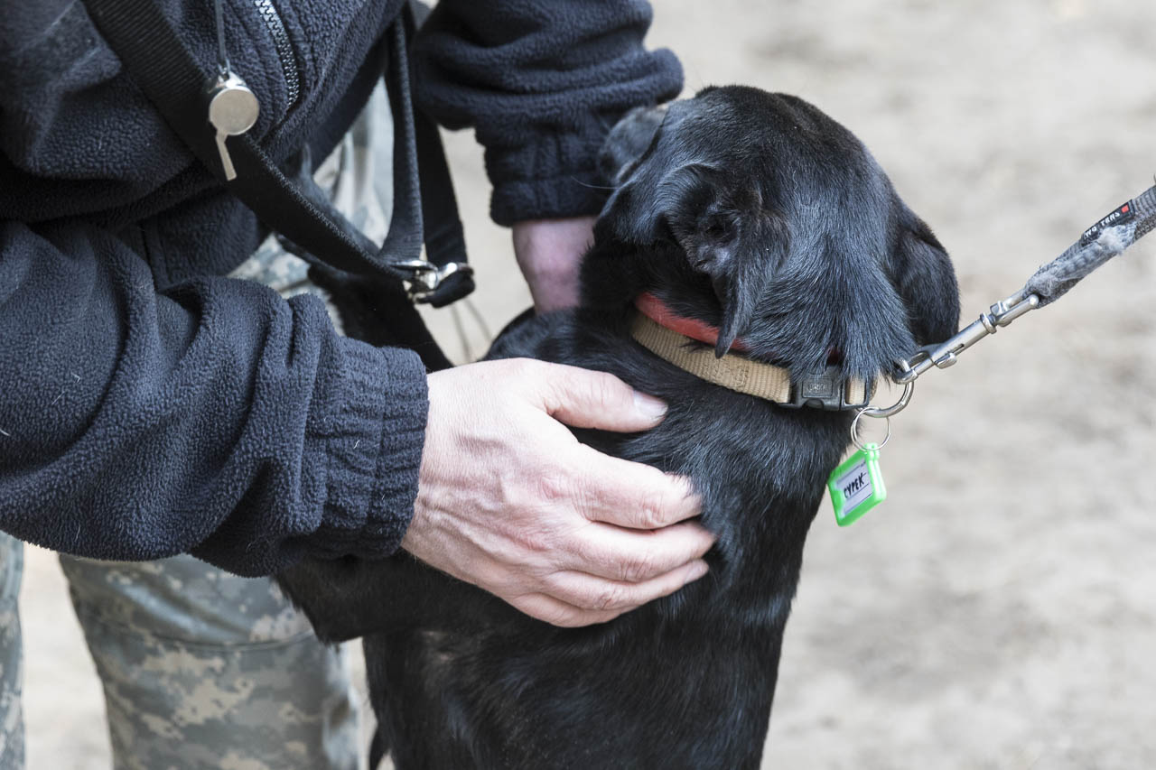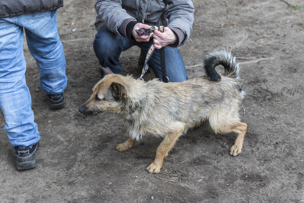 Dann ging es auf die Waage. Ein passendes Halsband musste herausgesucht werden. Der Chip wurde ausgelesen und alle Papiere verglichen.