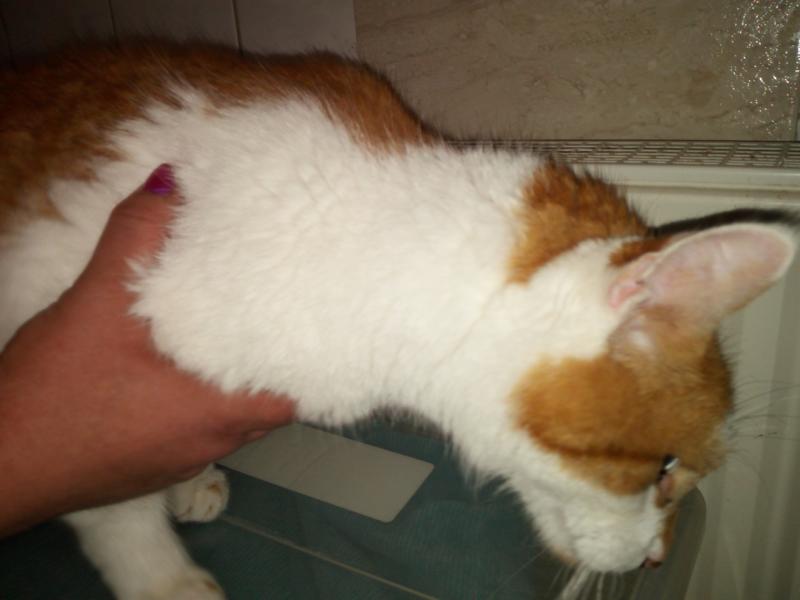 Wie wir von dem bisherigen Tierarzt des rot-weißen Hübschen erfuhren, hatte er vor zwei Jahren einen Bruch im Oberschenkel und erhielt eine Platte.