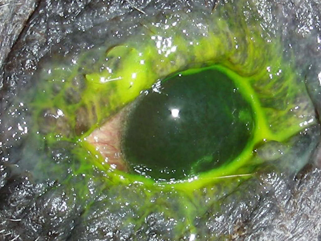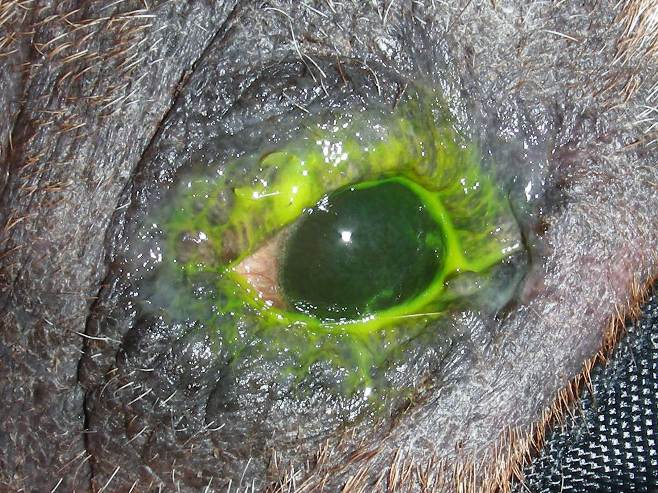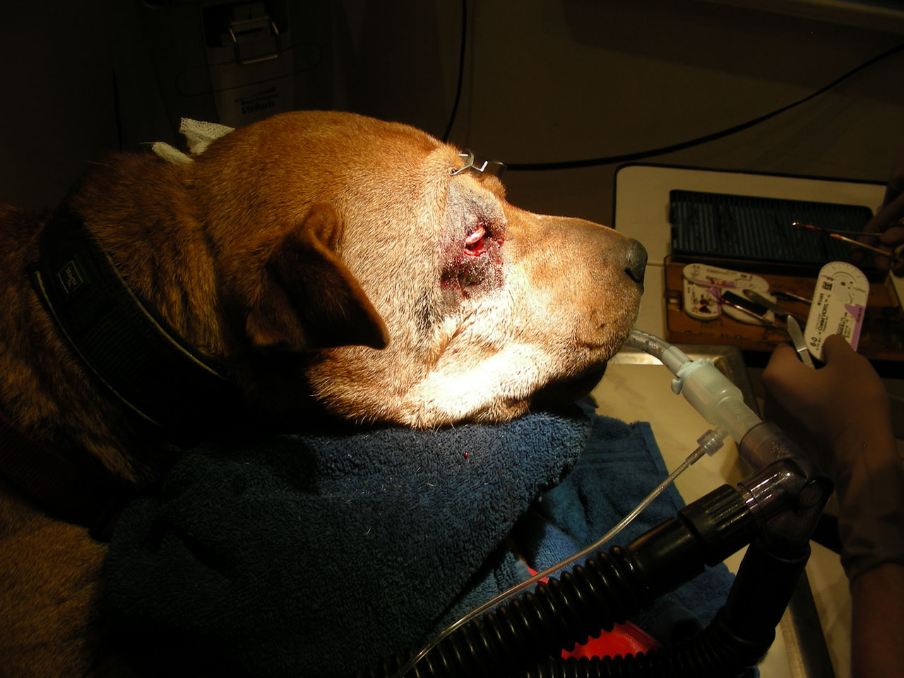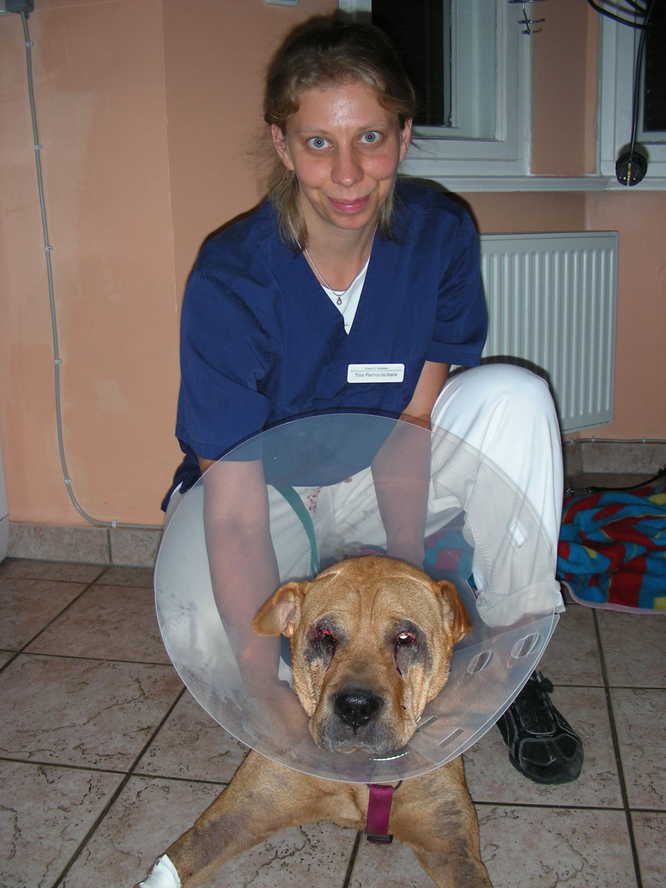 Auch ihre Augen bereiten ihr immer wieder Probleme. Erst mussten wir Entzündungen behandeln. Jetzt hatten sich Roll-Lider herausgebildet. Das ist kein bloßer optischer Makel, sondern die nach innen gekehrten Lider und Wimpern kratzen auf der Hornhaut. Das schädigt die Augen weiter und verursacht Schmerzen.