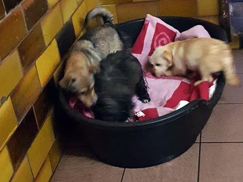 Diese Familie wurde vor kurzem bei uns abgegeben. Es ist eine Mama-Hündin mit ihren drei Welpen.